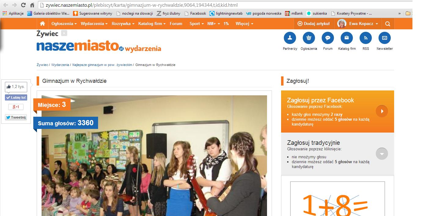 Obecnie jesteśmy na trzecim miejscu. W załączniku zamieszczamy wizerunek strony, na której głosujemy.