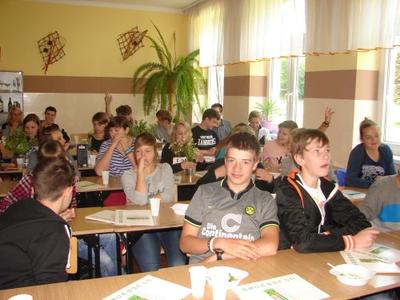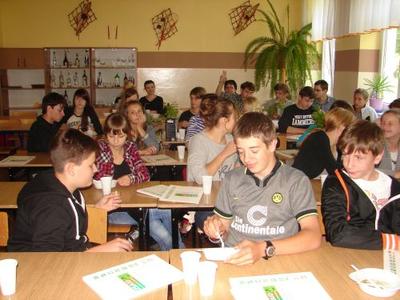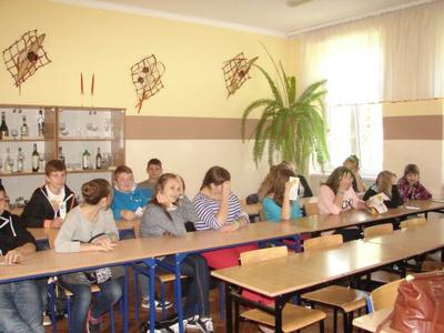 Uczniowie klasy II gimnazjum mieli możliwość poznać tajniki zdrowego przyprawiania potraw przez różne zioła. Uzyskali również informacje na temat fałszowanej żywności, jakie dodaje się konserwanty, dodatki smakowe i barwniki i jaki mają one wpływ na nasze zdrowie. Tych interesujących wiadomości dowiedzieliśmy się na warszatach zorganizowanych w Zespole Szkół Agroturystycznych i Ogólnokształcących w Żywcu -Moszczanicy. Na zakończenie odbył się konkurs w rozpoznawaniu ziół oczywiście z utrudnieniem z zawiązanymi oczami. W konkursie uczestniczyli z naszej szkoły uczniowie Wojtek Woźniak, Patrycja Duc i Daria Lach. Najlepiej zapach i smak ziół zapamietał Wojtek. Uczestnicy konkursu otrzymali nagrody w postaci ziół w doniczkach.