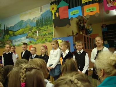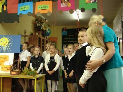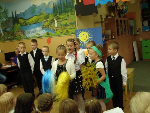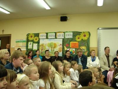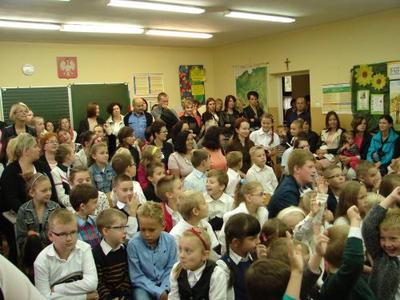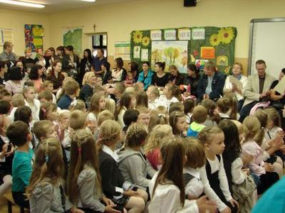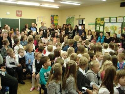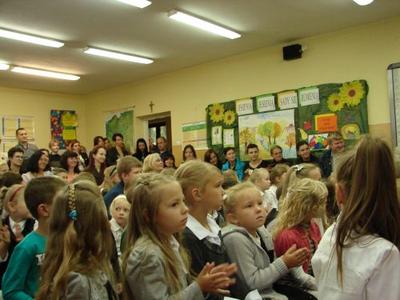 1 września 2014r. rozpoczęliśmy nowy rok szkolny 2014/2015. O godzinie 8.00 odbyła się inaugurująca Msza św. Podczas homilii ojciec proboszcz Bogdan Kocańda zachęcał uczniów do rozwijania swoich talentów, podejmowania wyzwań w nowym roku. Po przejściu do szkoły gimnazjaliści udali się do swoich klas z wychowawcami, a dzieci z oddziału przedszkolnego i uczniowie szkoły podstawowej z licznie przybyłymi rodzicami wzięli udział w akademii z okazji rozpoczęcia roku szkolnego 2014/2015. Uczniowie klasy II z wychowawczynią panią Teresą Michalską przywitali najmłodszych uczniów programem artystycznym oraz drobnymi upominkami (notesy z długopisami), najmłodsi zostali przywitani na słodko - słodyczami. Pani dyrektor podziękowała rodzicom za pracę na rzecz szkoły, za wsparcie różnych inicjatych, udział w remontach i organizacji uroczystości. Po uroczystości uczniowie z wychowawcami i rodzicami rozeszli się do swoich sal na krótkie spotkanie. Następnie gimnazjaliści przybyli na apel. Dyrektor Ewa Kopacz poinformowała uczniów o realizacji w nowym roku szkolnym projektu ze środków unijnych. Będą to dodatkowe zajęcia prowadzone przez nauczycieli ze szkoły oraz wykładowców z wyższych uczelni. Nauczyciele poprowadzą zajęcia z języków obcych, w których obowiązkowo bedą uczystniczyli wszyscy gimnazjaliści. Ponadto uczniowie będą mieli możliwość pogłębienia swojej wiedzy z przedmiotów, które obowiązują na egzaminie: matematyki, języka polskiego, biologii, chemii, fizyki i geografii. Będą również zajęcia rozwijające zainteresowania- komputerowe metodą web questów, artystyczno-techniczne i gastronomiczne. Wykładowcy z uczelni skoncentrują się na zajęciach poprawiających pamięć, umiejętność szybkiego czytania oraz "pogimnastykują umysł". Będą również ćwiczenia cyrkowe... Ten rok na pewno będzie bardzo interesujący. Nie mogliśmy spotkać się wszyscy razem, poniewaz szkoła nie dysponuje tak dużą salą. Z roku na rok przybywa uczniów w naszej szkole. W tym roku szkolnym jest prawie 190 uczniów. Życzymy wszystkim uczniom wielu sukcesów, nauczycielom satysfakcji z osiąganych wyników i rodzicom wiele radości z postępów swoich pociech.