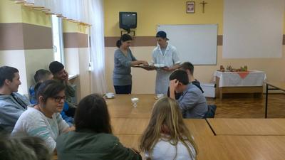 !9 listopada Uczniowie z III klasy gimnazjum brali udział w warsztatach na temat niedocenianych roślin strączkowych. Prowadząca warsztaty pani Barbara Malina nauczycielka ZSAiO w Żywcu zapoznała uczniów z różnymi gatunkami tych roślin, ich właściwościami, zawartymi w nich składnikami odżywczymi oraz wykorzystaniem tych roślin w kuchniach różnych krajów świata. Po prezentacji uczniowie degustowali bardzo smaczną zupkę krem z zielonego groszku przygotowaną przez uczniów Technikum Gastronomicznego. Mieliśmy okazję spróbować także na deser trufli z cieciorki. Na końcu odbył się konkurs ze znajomości różnych gatunków poznanych podczas warsztatów roślin. Najlepiej poradził sobie Samuel Drobisz, II miejsce zajęła Daria Lach, a trzecie Piotr Barcik. Uczniowie otrzymali nagrody i pamiątkowe dyplomy. Uczniom gratulujemy, a Pani Barbarze Malinie serdecznie dziękujemy za wzbogacenie wiedzy na temat tak bardzo wartościowych roślin i możliwości degustacji potraw, których głównym składnikiem były cenne nasiona.