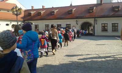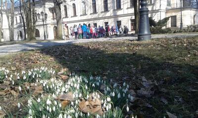 Przed projekcją filmu spacerowaliśmy alejkami parku żywieckiego podziwiając jego piękno i odkrywając pierwsze oznaki wiosny. Towarzyszyło nam również zjawisko zaćmienia słońca.