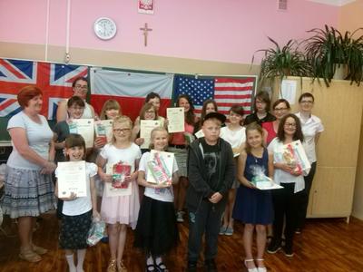 Werdykt okazał się szczęśliwy dla dwóch naszych reprezentantek - Natalii Cygoń, która zajęła I miejsce (ex aequo) i Nikoli Pietyry, która wywalczyła III lokatę. Dziewczynki 2 tygodnie wcześniej śpiewając te same piosenki zdobyły wspólnie I miejsce w kategorii "karaoke" konkursu "English - why not?", który odbywał się w naszej szkole. Zostały więc teraz docenione po raz drugi, co tylko potwierdza ich niebywałe zdolności.