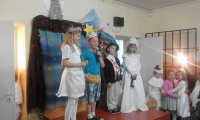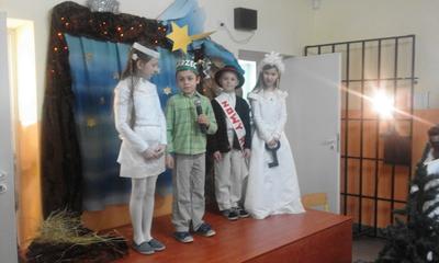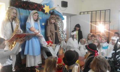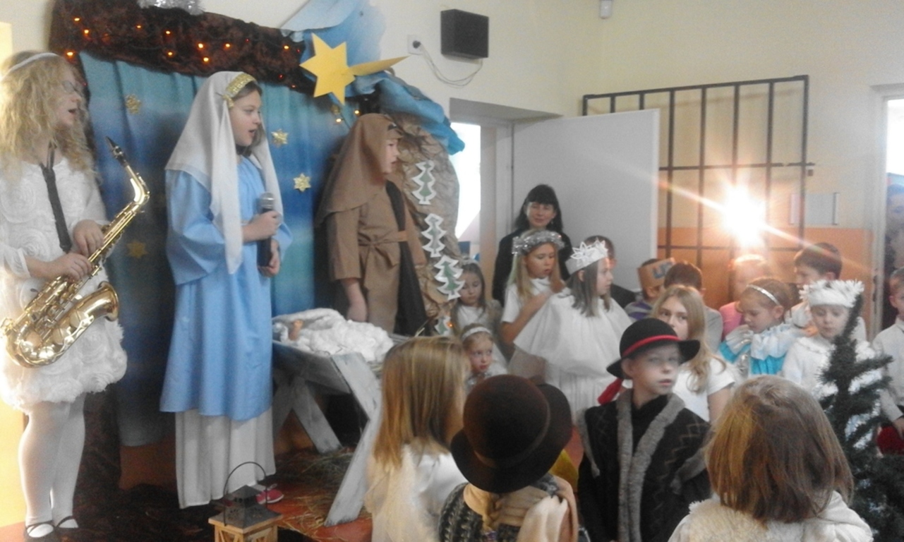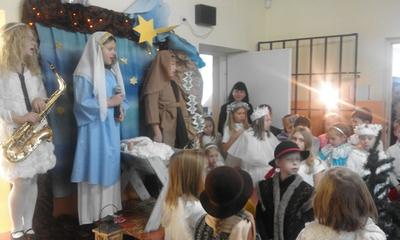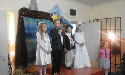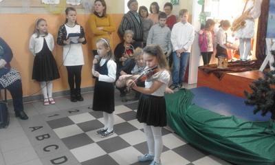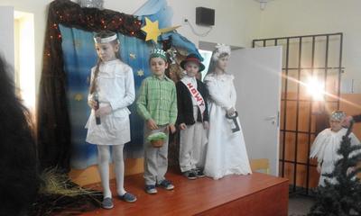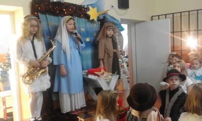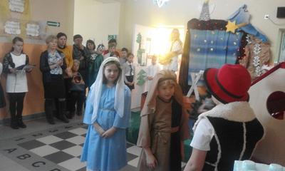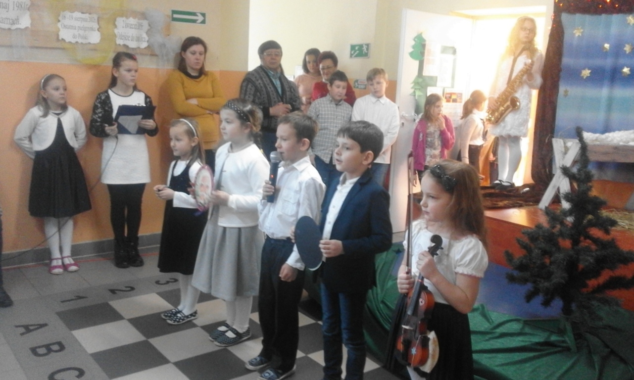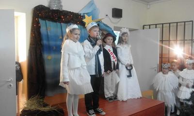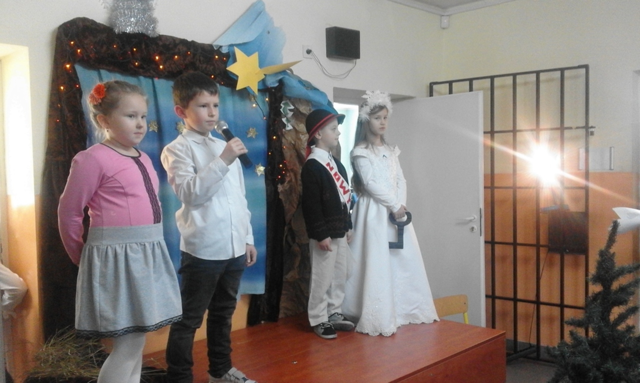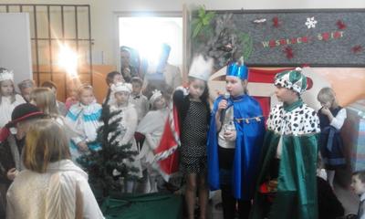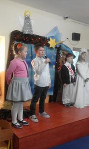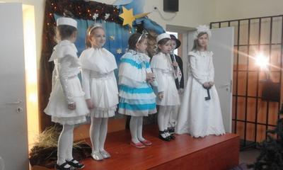 Program artystyczny rozpoczęła grupa dziewczynek z klas I-III pokazem tańca nowoczesnego. Następnie uczniowie klasy I wierszem i piosenką powitali wszystkich zebranych. Z kolei uczniowie klas II swoim programem zaprosili wszystkich do wysłuchania życzeń noworocznych składanych przez poszczególne miesiące. Finałem uroczystości były jasełka bożonarodzeniowe, które przygotowali i przedstawili uczniowie klasy III, połączone ze wspólnym śpiewem kolęd.
