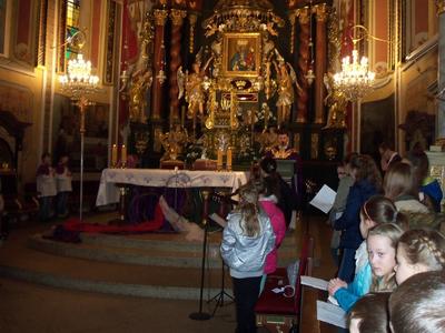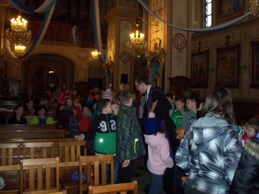 Przez kolejne trzy dni wraz z wychowawcami, każda klasa udawała się do kościoła parafialnego na spotkanie rekolekcyjne. Po przywitaniu słowami; „ Dobrze, że jesteś”, z modlitwą na ustach i gestami rąk wypowiadaliśmy słowa do Jezusa Miłosiernego „JEZU UFAM TOBIE”.
