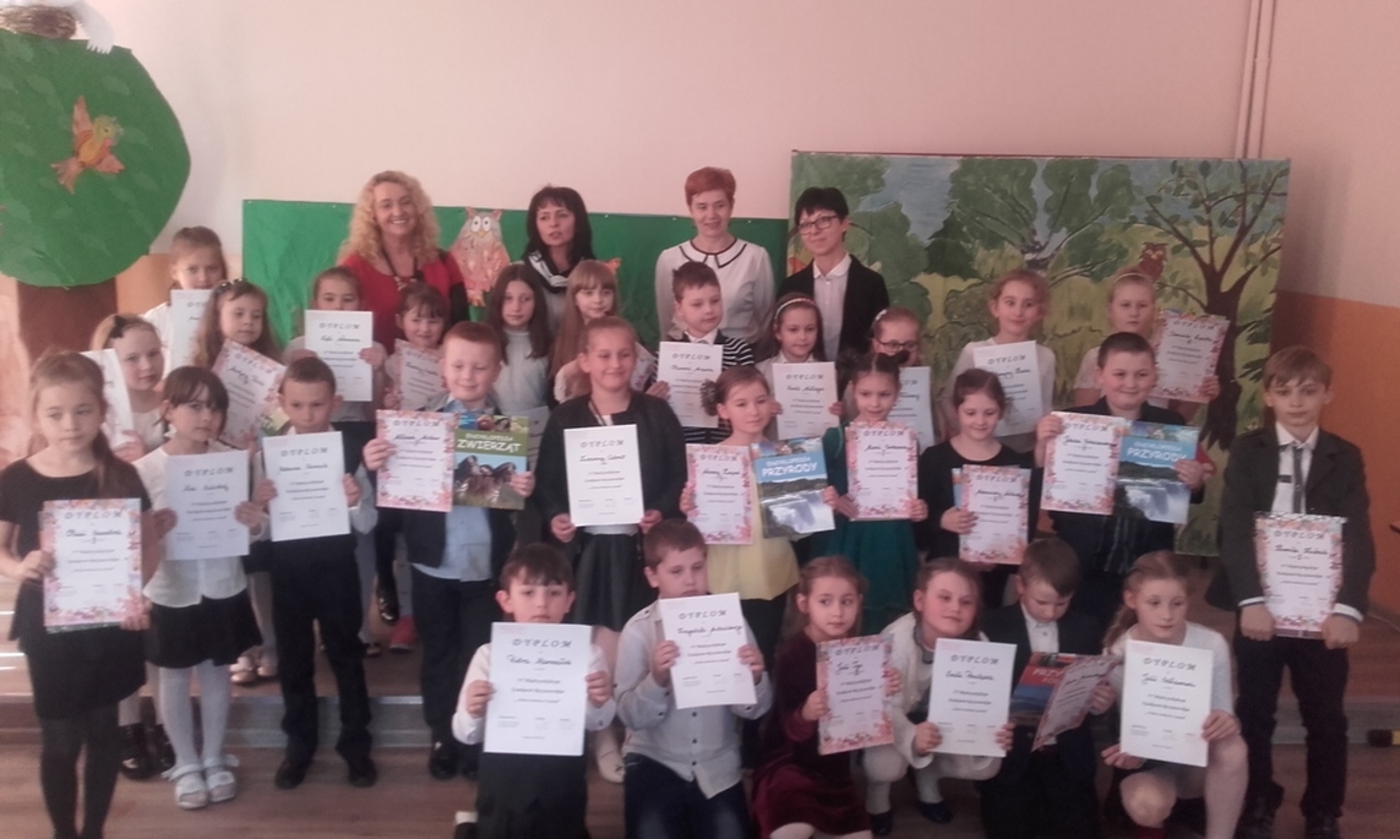 28 kwietnia 2016r. w Szkole Podstawowej w Świnnej odbył się IV Międzyszkolny Konkurs Recytatorski pt. „Świat zwierząt w poezji”. Konkurs przeznaczony był dla uczniów klas I–III. Naszą szkołę reprezentowali: z klasy I-Maja Molska i Mateusz Okrzesik, z klasy II- Nina Karbowska i Martyna Talik, z klasy III- Miłosz Midor i Ania Walatek. Uczestnicy konkursu zostali powitani przedstawieniem baśni H.CH. Andersena pt. ”Brzydkie Kaczątko” w wykonaniu uczniów klasy II. Następnie w obecności licznie zebranej publiczności: szanownego jury, uczniów, nauczycieli i rodziców z kilku szkół recytowali wiersze. Na scenie pojawiły się różne zwierzęta. Wśród nich najczęściej prezentowała się sowa, czapla i żuraw, słowik, pojawiła się chora żaba, gruby hipopotam, była też pszczółka i chrząszcz. Uczestnicy wykazali się nie tylko piękną recytacją, ale prawdziwą grą aktorską. Nasi uczniowie pięknie zaprezentowali swoje utwory. Jury nagrodziło Miłosza Miodor II miejscem i Martnkę Talik III miejscem. Każdy uczestnik otrzymał pamiątkowy dyplom, a laureaci książkę o zwierzętach.
