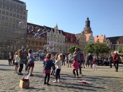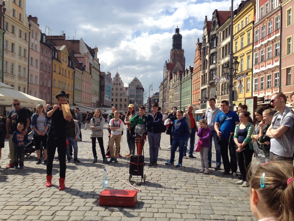 Po rejsie udaliśmy się na spacer, którego celem było przepiękne, słynne Stare Miasto. Najpierw zobaczyliśmy bardzo efektowny występ iluzjonisty, a następnie mieliśmy godzinę wolną. Przeznaczyliśmy ją na poszukiwania krasnali.