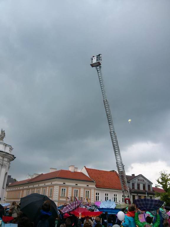 O godzinie 12.00 odmówiliśmy modlitwę Anioł Pański, a po niej strażacy zrzucili z „nieba” deszcz cukierków. Na wszystkich przybyłych gości czekał również urodzinowy tort. Po lekkim posiłku wróciliśmy szczęśliwie do Rychwałdu.