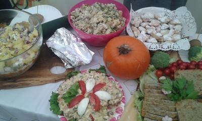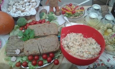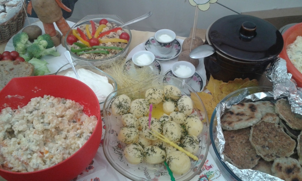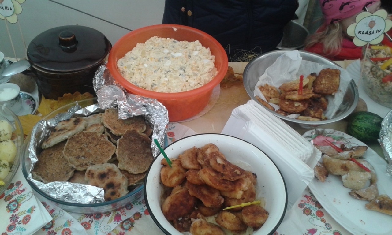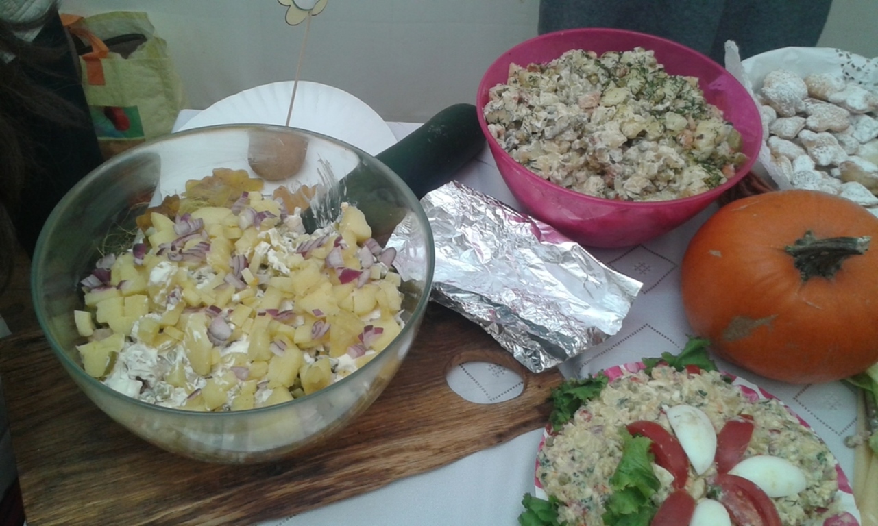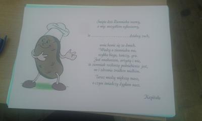 W dniu 22 października 2016r, odbył się Piknik rodzinny z okazji Święta Ziemniaka. Rodzice i uczniowie wspaniale się spisali przygotowując niezliczoną ilość potraw z naszych pospolitych szarych kartofelków. Wszystkie potrawy rozpływały się w ustach. Nie tylko świetnie smakowały, ale i cieszyły oko swym wyglądem. A czego tam nie było... duszonki, ziemniaczki faszerowane, półksiężyce pieczone, rogaliki ziemniaczane nadziewane dżemem, babka ziemniaczana, chlebek ziemniaczany, liczne sałatki, kluski śląskie, zupa ziemniaczana, różyczki z ciastem francuskim, szaszłyki z ziemniaczka, placuszki na wafelku,,, A kto zapamiętał pozostałe potrawy niech dopisze w komentarzach. Nauczyciele przygotowali wiele atrakcji, których bohaterem był oczywiście ziemniak, Były quizy o ziemniaku, robienie sałatek, pieczątek z ziemniaka, bukietów jesiennych, ziemniaczanego zoo, Dziękujemy wszystkim za wspaniałą zabawę i zaangażowanie. Mamy nadzieję na powtórzenie tego święta w kolejnych latach.