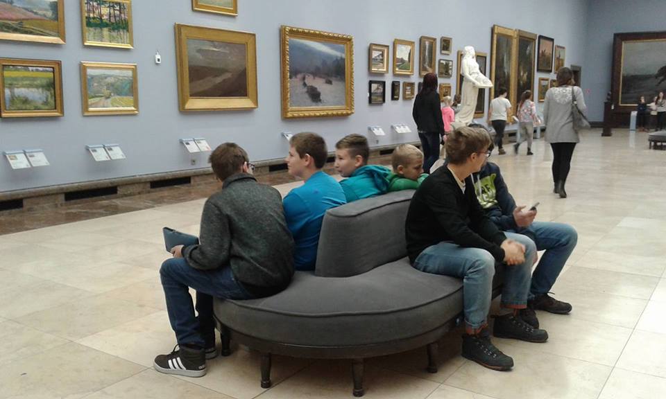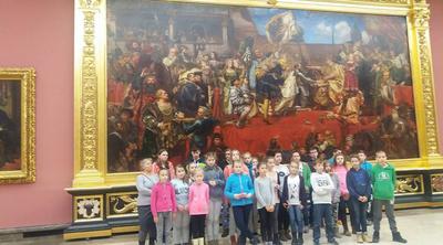 Nie wszyscy uczestnicy wyprawy chcieli zwiedzać sale Muzeum Narodowego w Sukiennicach. –Będzie nuda, a w programie miał być Wawel – dochodziły nieśmiałe szepty. Ale reakcja na obrazy sławnych malarzy przeszła nasze oczekiwania. To było piorunujące wrażenie. Ten błysk w oczach, otwarte z zachwytu buzie i zdziwienie, że obrazy są takie duże. Ekspozycja w Sukiennicach prezentowana jest w czterech salach: Bacciarellego, Michałowskiego, Siemiradzkiego, Chełmońskiego.