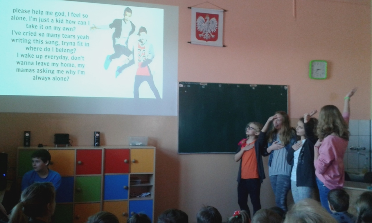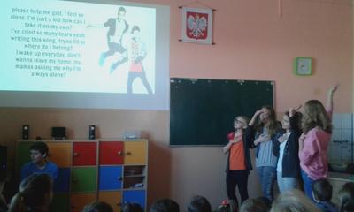 W przerwie zmagań wokalnych wystąpili uczniowie klasy VI, Adrian Barcik i Andrzej Hubka, ze skeczem "My perfect son". Znakomitą niespodziankę sprawiły nam dzieci z przedszkola, albowiem poza konkursem zaśpiewały 2 angielskie piosenki, świetnie przy tym tańcząc.