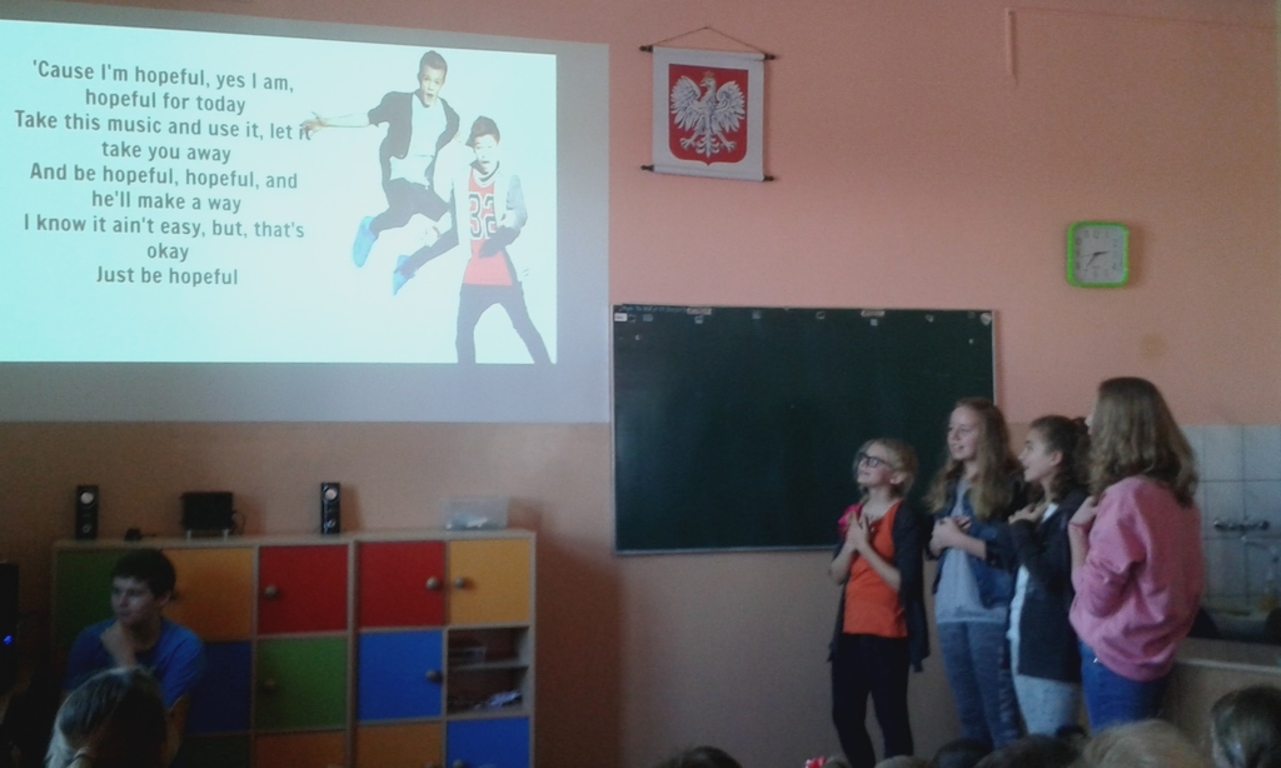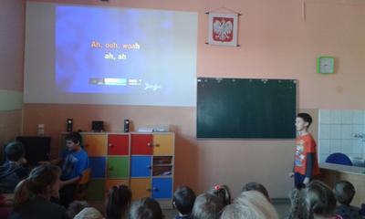 9 grudnia uczniowie szkoły podstawowej mieli okazję sprawdzić swoje zdolności wokalne (i nie tylko) podczas karaoke. Chętnych było wielu, ostatecznie jednak wystąpili najodważniejsi. Swoje reprezentacje miały klasy: IV, V, VI i I gimnazjum. Piosenkarzom kibicowali uczniowie i wychowawcy, a także przedszkolaki wraz z opiekunkami. Były angielskie piosenki świąteczne, ale również popularne przeboje znane z radia czy telewizji, także wykonywane w języku angielskim.