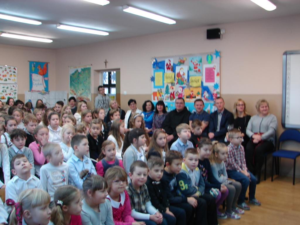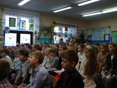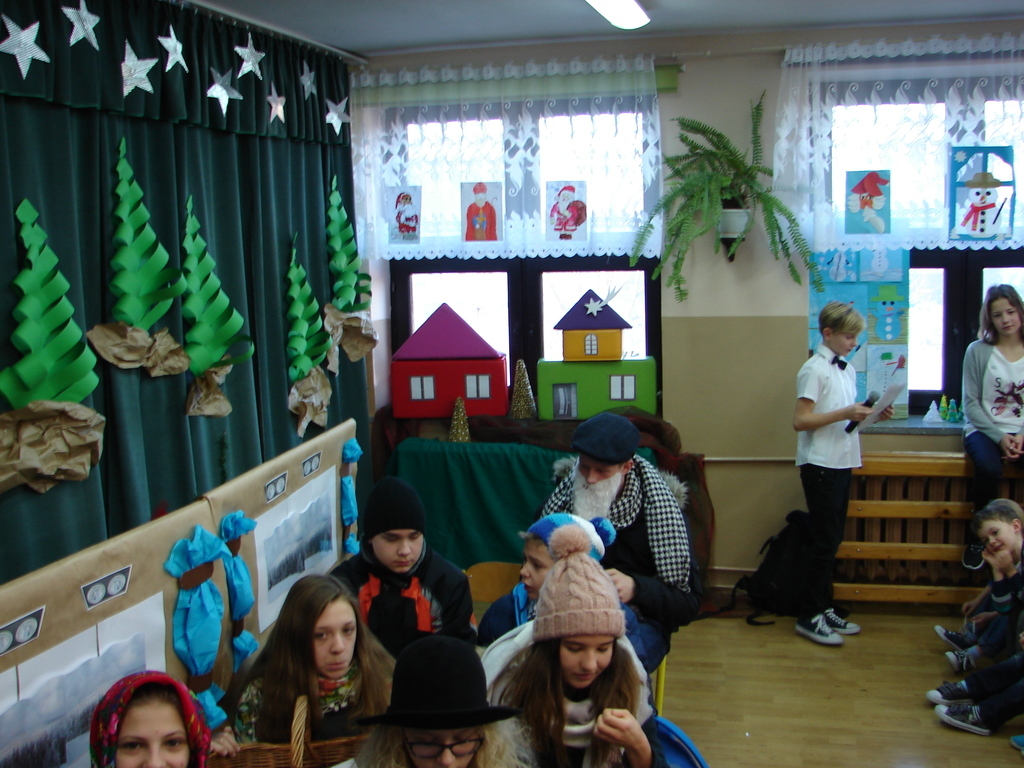 W świąteczny nastroju spędziśmy ostatni dzień przed świętami Bożego Narodzenia. Piękne przedstawienie przygotowabe przez uczniów klasy I gimnazjum pod kierunkiem nauczycielek Małgorzayy Bąk i Elżbiety Marszałek wzruszyło nie jednego odbiorcę. Po przedstawieniu uczniowie wraz z wychowawcami spotkali się na klasowych wigiliach. Wszyscy składali sobie życzenia świąteczne i noworoczne, Szkoła również przybrała odświętny wygląd dzięki pięknym pracom plastycznym uczniów.