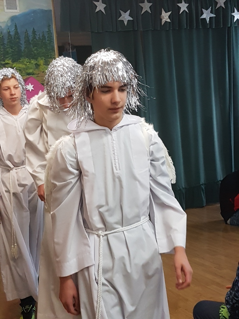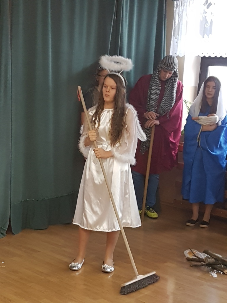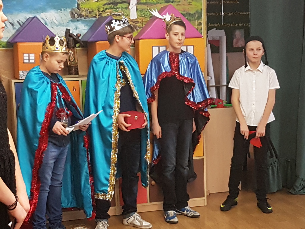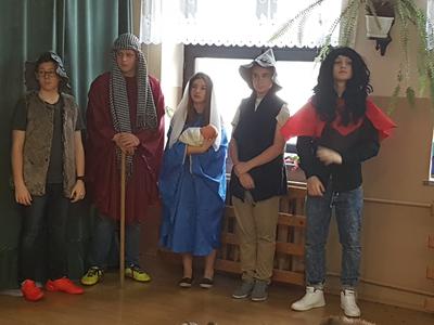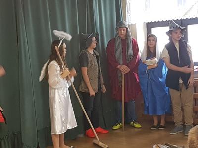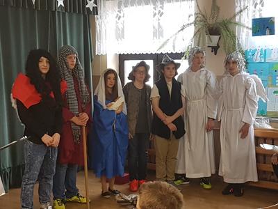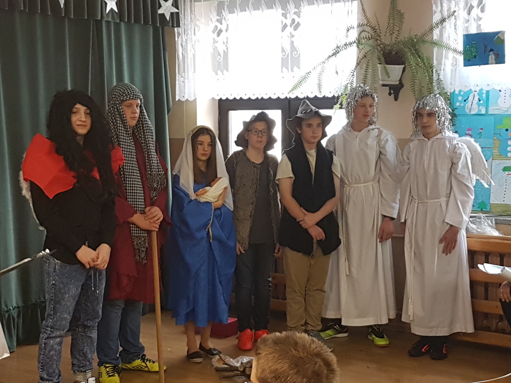 A jednak się udało! W pierwszych dniach lutego, przysłowiowym "rzutem na taśmę" przedstawiliśmy braci szkolnej nasze jasełka. Pracy było sporo (długie teksty do opanowania pamięciowego, kłopoty ze skompletowaniem strojów i rekwizytów, wiele godzin prób), mimo tego efekt końcowy przypadł do gustu widzom, którzy nagrodzili występujących gromkimi brawami.