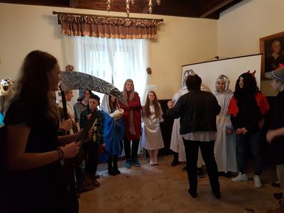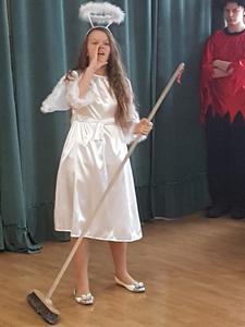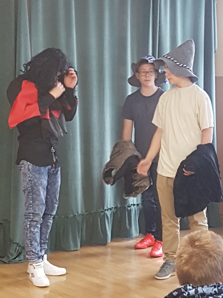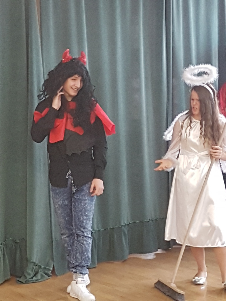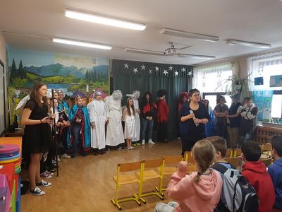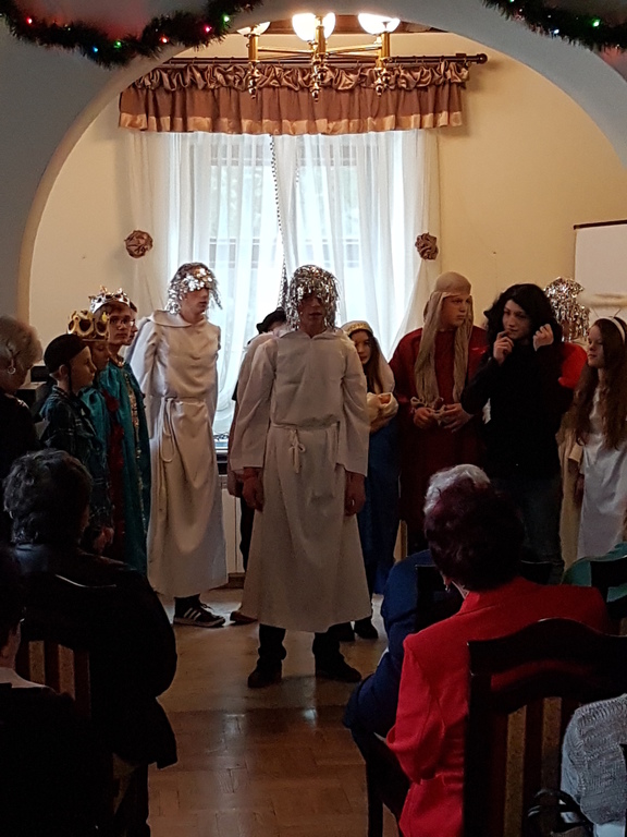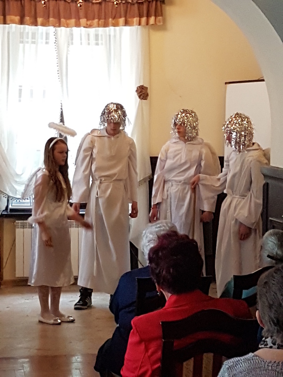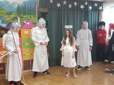 A jednak się udało! W pierwszych dniach lutego, przysłowiowym "rzutem na taśmę" przedstawiliśmy braci szkolnej nasze jasełka. Pracy było sporo (długie teksty do opanowania pamięciowego, kłopoty ze skompletowaniem strojów i rekwizytów, wiele godzin prób), mimo tego efekt końcowy przypadł do gustu widzom, którzy nagrodzili występujących gromkimi brawami.