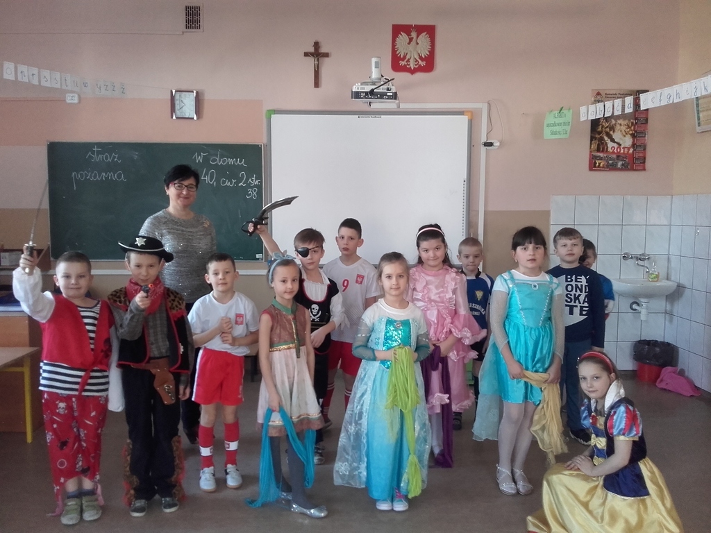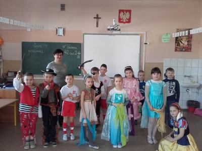 Zabawa karnawałowa dla klas I-III odbyła się 14 lutego 2017 roku i była połączona z obchodami Walentynek. Prawie wszyscy uczestnicy zadbali o karnawałowy strój. Przygotowali też Walentynki, które osobiście lub przez szkolny radiowęzeł trafiły do wybrańców. Na balu mogliśmy podziwiać kostiumy wykonane samodzielnie lub wypożyczone. Wśród dziewczynek prym wiodły stroje księżniczek, góralek i postaci z bajek. Wśród chłopaków dominował strój piłkarza- Roberta Lewandowskiego, ale byli też strażacy, piraci i bohaterowie z filmów dla dzieci. Wspólne pląsy, tańce w różnych rytmach muzyki polskiej i zagranicznej wypełniły dwugodzinny czas. Każdy uczestnik otrzymał soczek i baton Prince-polo ufundowany przez Radę Rodziców.