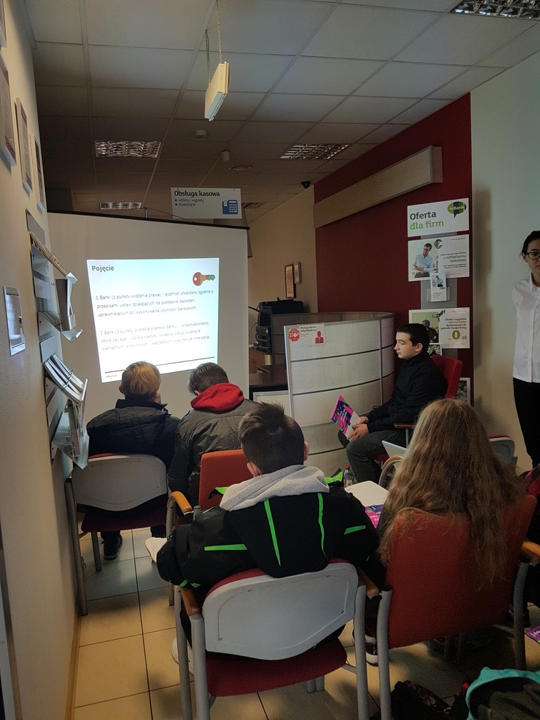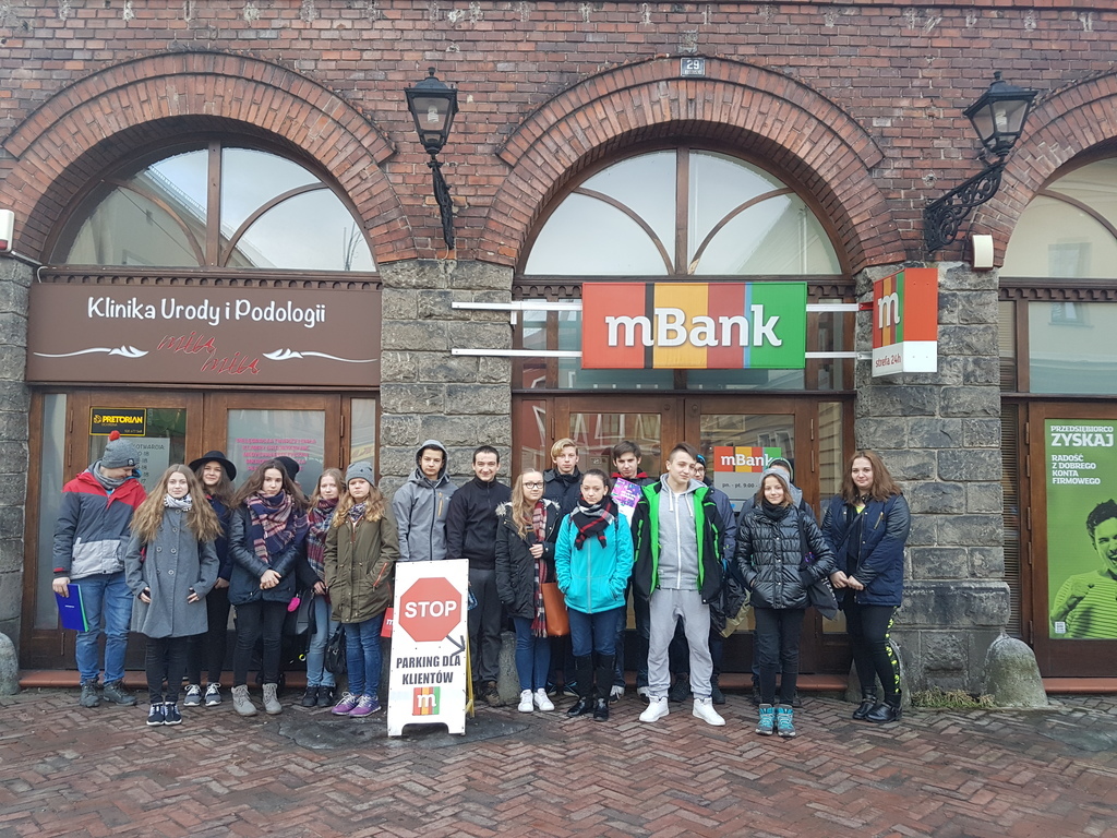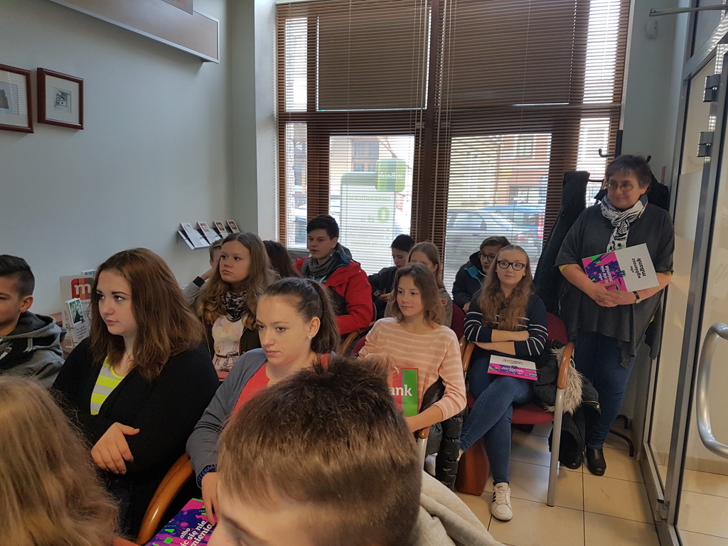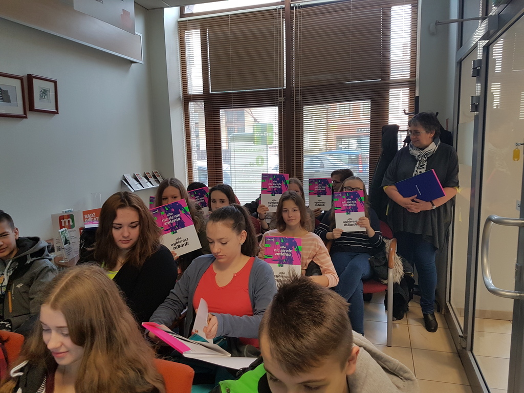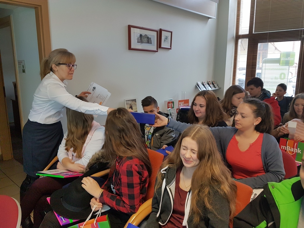 Jedną z form rozwijających przedsiębiorczość wśród gimnazjalistów, a zwłaszcza umiejętne gospodarowanie własnymi finansami jest praktyczna wiedza o podstawach funkcjonowania bankowości. Dzięki uprzejmości pracowników m-Banku w Żywcu nasi uczniowie mieli okazję zapoznać się z organizacją pracy banku oraz ofertą usług również dla młodzieży.