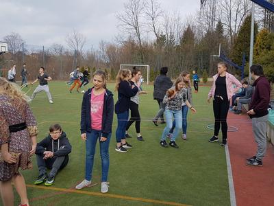W tym roku witaliśmy wiosnę kolorowo i wesoło. Każdy mógł znaleźć dla siebie coś atrakcyjnego. Zorganizowaliśmy quizy wiedzy na wesoło – nagrodą za zwycięstwo był dzień wolny od złych ocen i odpytywania dla całej klasy ( taki szkolny jednodniowy immunitet). Plastycy tworzyli wiosenne kwiaty, poeci- wiersze , a każdy ,niezależnie od wieku i zainteresowań mógł poskakać w gumę, pograć w hula-hop (chłopcy wymyślili zabawę w celność rzutów) lub obejrzeć ciekawy film w jednej z sal projekcyjnych.