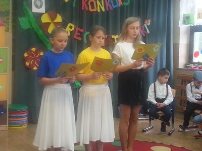 Naszą szkołę reprezentowało 9 uczniów. Byli to: Hubert Barcik, Filip Kopacz-z klasy I, Julia Górny, Zuzia Kastelik, Maksymilian Grądzki – z klasy II, Julia Urbaniec, Wiktoria Wierzbinka -z klasy IIIa i Martyna Talik i Filip Wróbel z klasy IIIb. Wszyscy zaprezentowali się bardzo dobrze, jednak jury do grona laureatów wybrało: Huberta Barcika i Filipa Wróbel, którzy zdobyli I miejsca, a także Julię Urbaniec i Martynkę Talik, które zdobyły III miejsca.