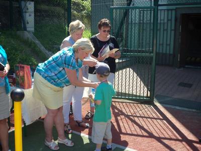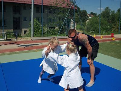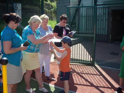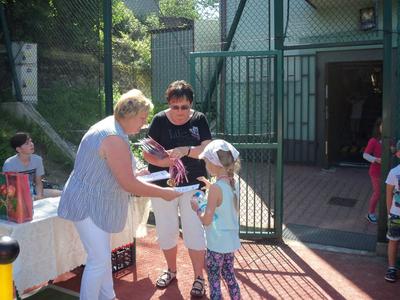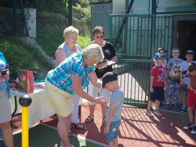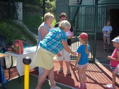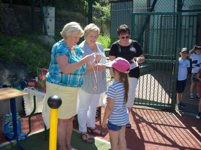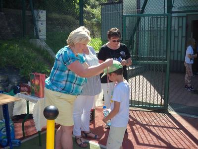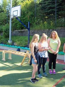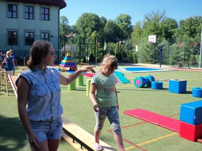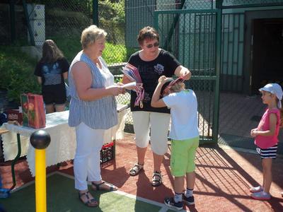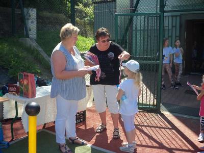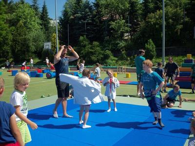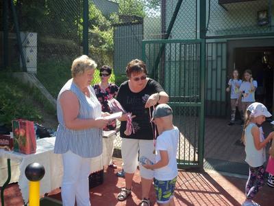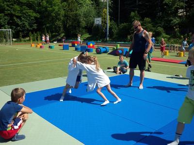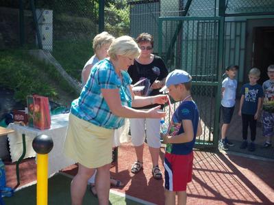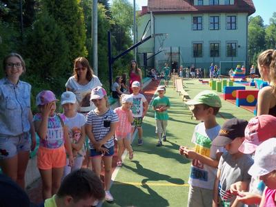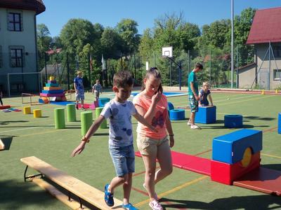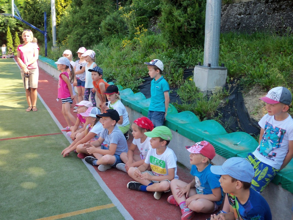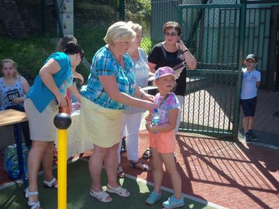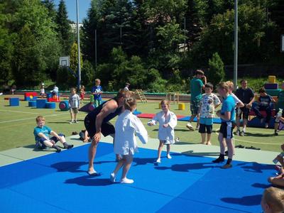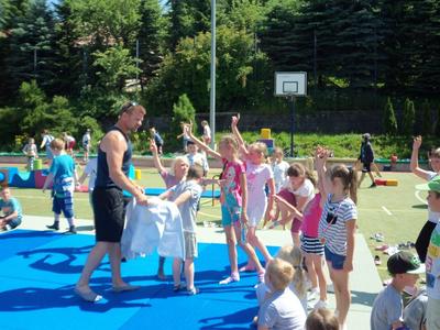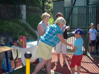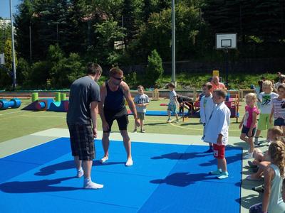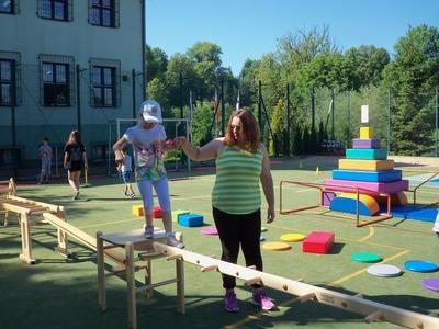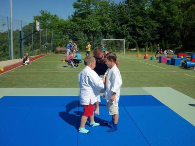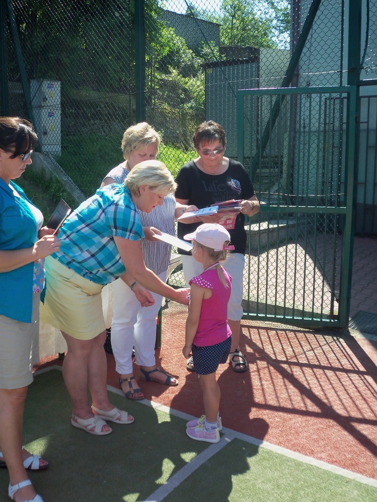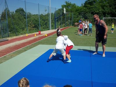 Jak co roku uczniowie klasy III gimnazjum wspólnie z nauczycielami: Urszulą Ostrowska, Elżbietą Marszałek, Agnieszką Knapek i Dariuszem Kudzią zorganizowali dla najmłodszych uczniów naszej szkoły i najstarszych przedszkolaków Olimpiadę Sportową. Organizatorzy zadbali o urozmaicone konkurencje, medale, nagrody i poczęstunek dla olimpijczyków. Jak każda olimpiada, także nasza rozpoczęła się uroczyście od odśpiewania hymnu państwowego oraz hymnu olimpijskiego, podczas którego uczniowie wciągnęli na maszt flagę narodową, unijną oraz olimpijską. Dzieci rywalizowały z wielkim zaangażowaniem i wszyscy zasłużyli na złote medale. Dodatkową atrakcją były zawody siłowe na matach. Cieszyły się one wielkim zainteresowaniem. Uczniowie dobierali się w pary, a wygrywał ten, któremu udało się wypchnąć przeciwnika z pola walki. Uczeń klasy III gimnazjum Filip Dybał uczył dzieci udzielania pierwszej pomocy przedmedycznej. Wszyscy świetnie się bawili z maskotką olimpiady, którą w tym roku był Smok. Wcielił się w niego Jeremiasz Kamiński.