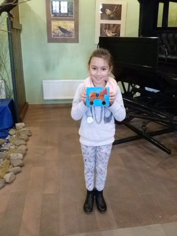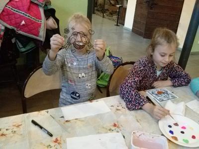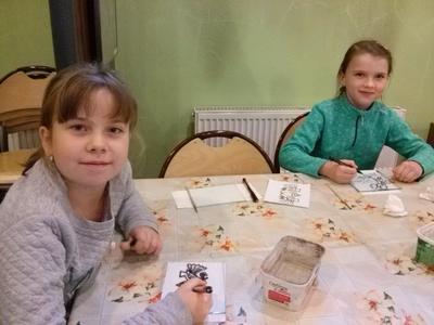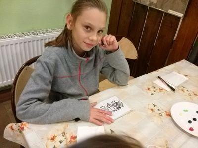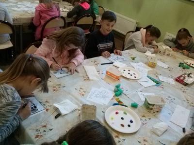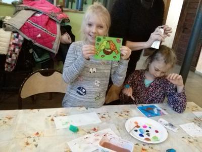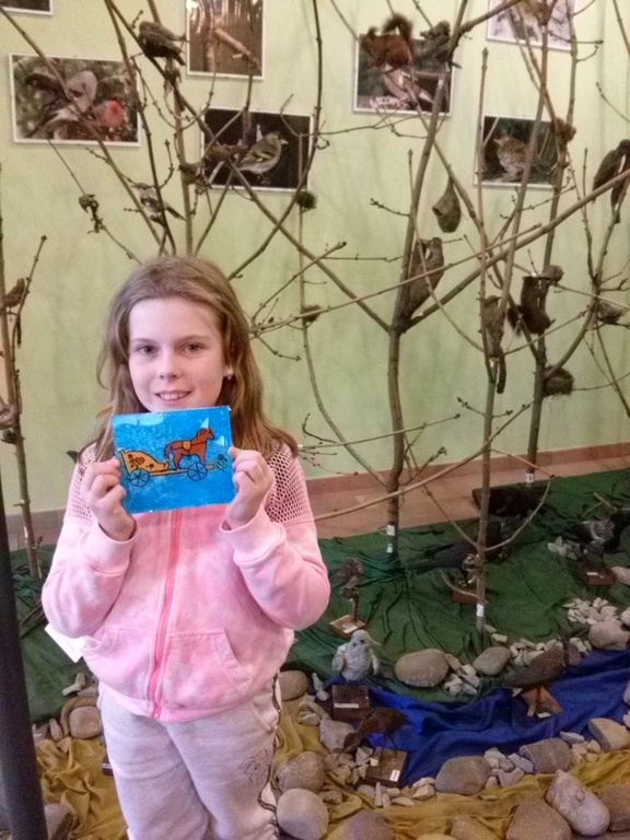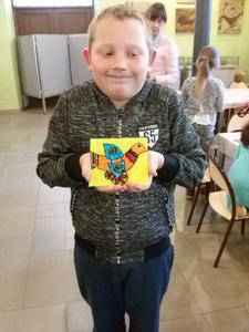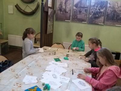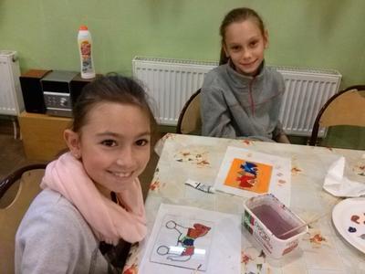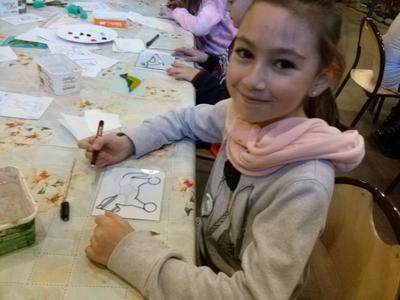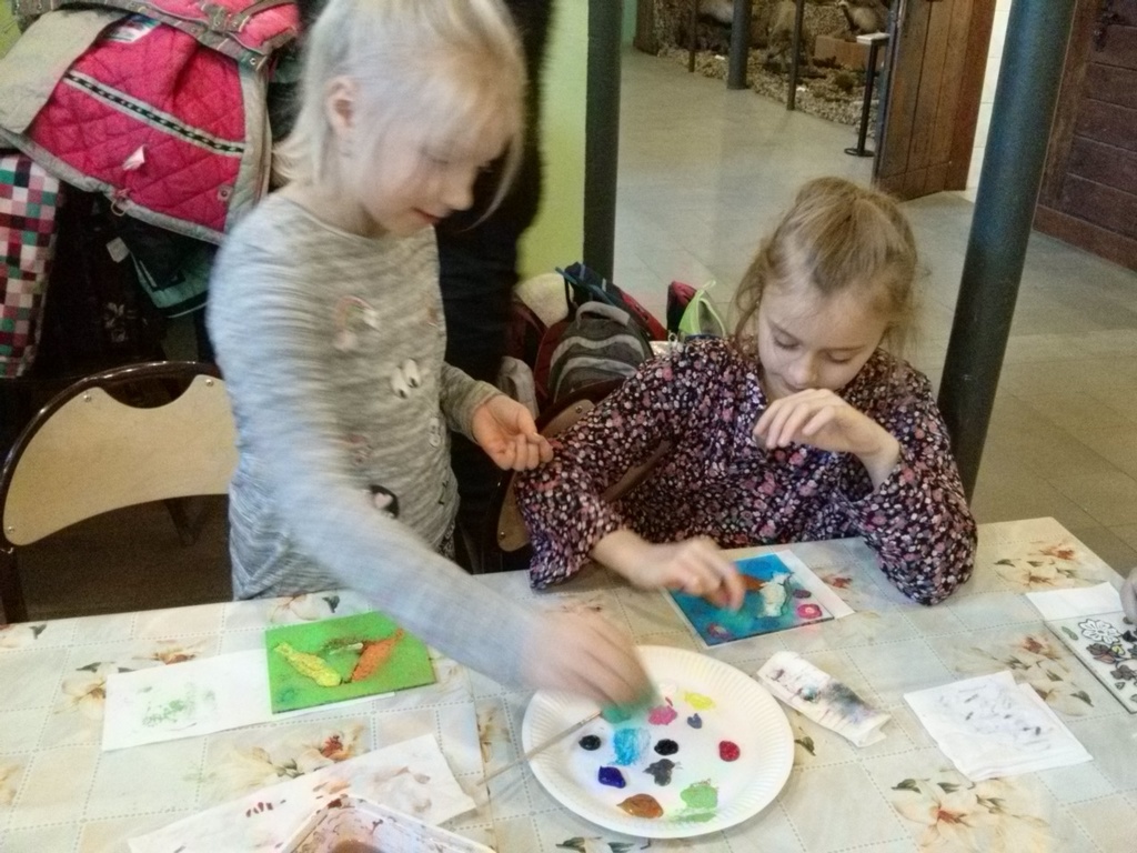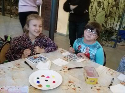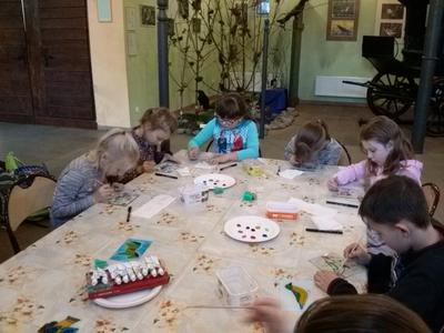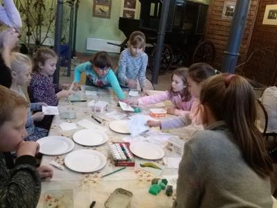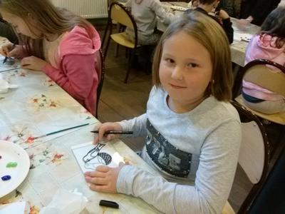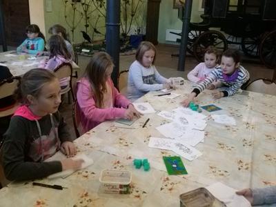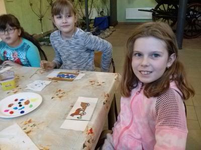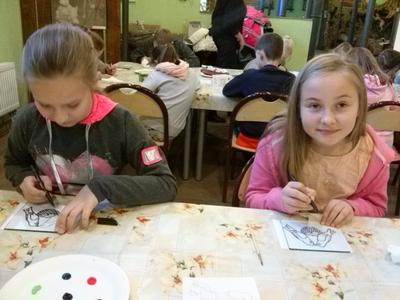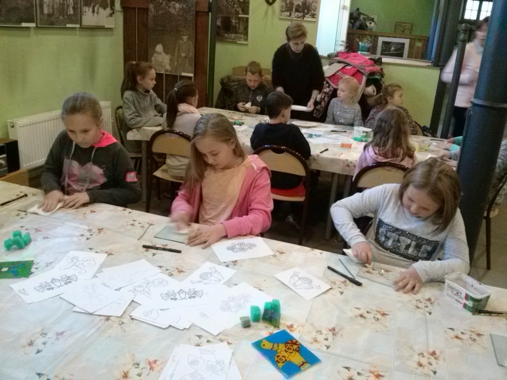 Po rozrywce tak bardzo związanej z nowoczesnymi technologiami klasa VI udała się w drogę powrotną do Rychwałdu, natomiast klasa IVB przeniosła się w całkiem inny świat - do Muzeum Miejskiego w Żywcu. Tam, w części etnograficznej, dzieci wysłuchały krótkiego wykładu na temat malarstwa na szkle na żywiecczyźnie, a następnie wzięły udział w warsztatach malarskich. Zgodnie z instrukcjami prowadzącej zajęcia dzieci najpierw namalowały kontur obrazka, potem dokładnie i w wielkim skupieniu wypełniły go farbami, a na końcu wykonały tło. Wszystko według własnego projektu. Dzieci były zachwycone efektami swojej pracy i z dużym entuzjazmem wypowiadały sie o warsztatach. Cieszy to niezmiernie, zwłaszcza że chwilę wcześniej oglądały przecież film rozgrywający się w zupełnie innej rzeczywistości.