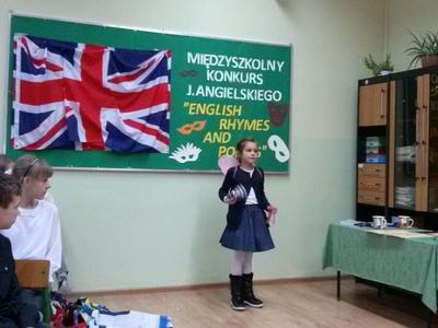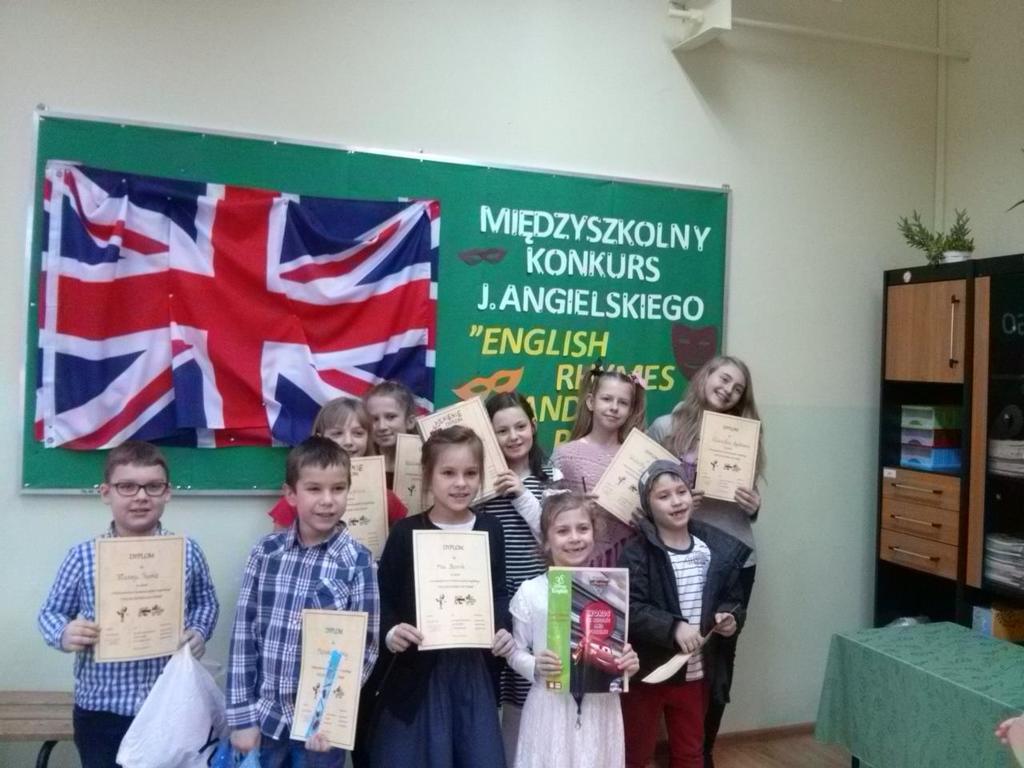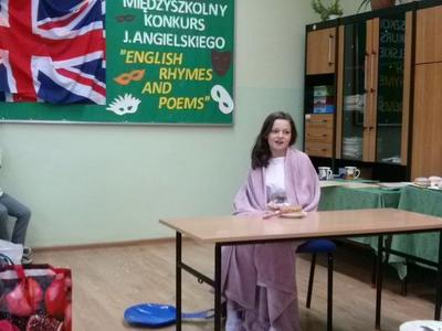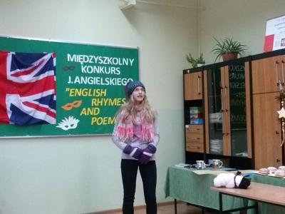 W pierwszym półroczu uczniowie bardzo chętnie brali udział w różnych konkursach języka angielskiego. Swoich reprezentantów mieliśmy m.in. w Olimpiadzie Języka Angielskiego, w Międzyszkolnym Konkursie Recytatorskim z Języka Angielskiego "English Rhymes and Poems" (pisaliśmy o nim wcześneij), w Ogólnopolskim Konkursie Jęz. Ang "Memory Master" oraz w XI Konkursie Języka Angielskiego dla szkół gimnazjalnych organizowanym przez LO im. Żeromskiego w Bielsku-Białej.