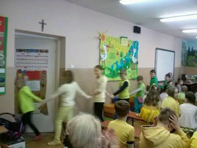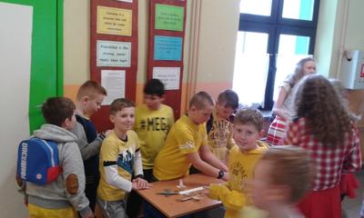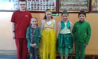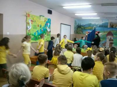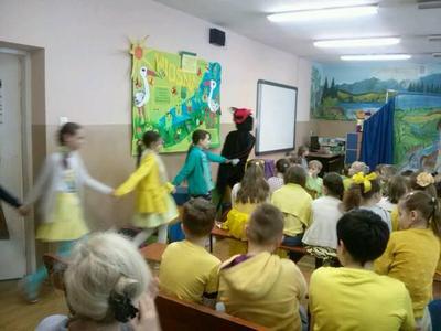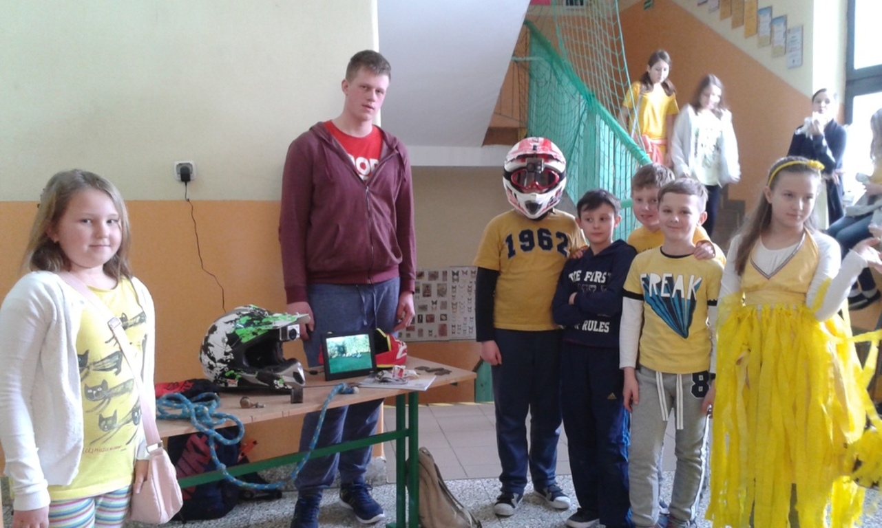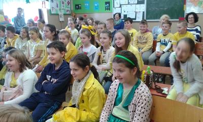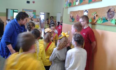 Wiosnę przywitaliśmy w tym roku inaczej niż zwykle. Stery w szkole przejął Samorząd Uczniowski. Liderki zaproponowały wszystkim uczniom dość ciekawy przebieg dnia i z aprobatą p. Dyrektor Ewy Kopacz wprowadziły „wiosenne innowacje” : każdy poziom wylosował kolor ”mundurków” : klasy I-III przyszły ubrane na zielono, klasy IV-VI cieszyły oczy wszystkimi odcieniami żółtego, klasy VII, IIg i IIIg odróżniały się nie tylko czerwienią strojów ale i ekstrawagancko zabarwionymi fryzurami, a nauczycielom, którzy również sprostali zadaniu, przypadł kolor niebieski. Wytypowano pięć najciekawszych strojów. Zwycięzcy zostali nagrodzeni zwolnieniem z odpytywania w kolejnych dwóch dniach.