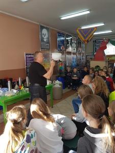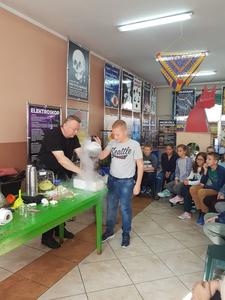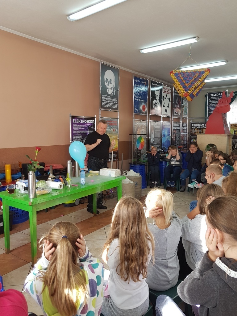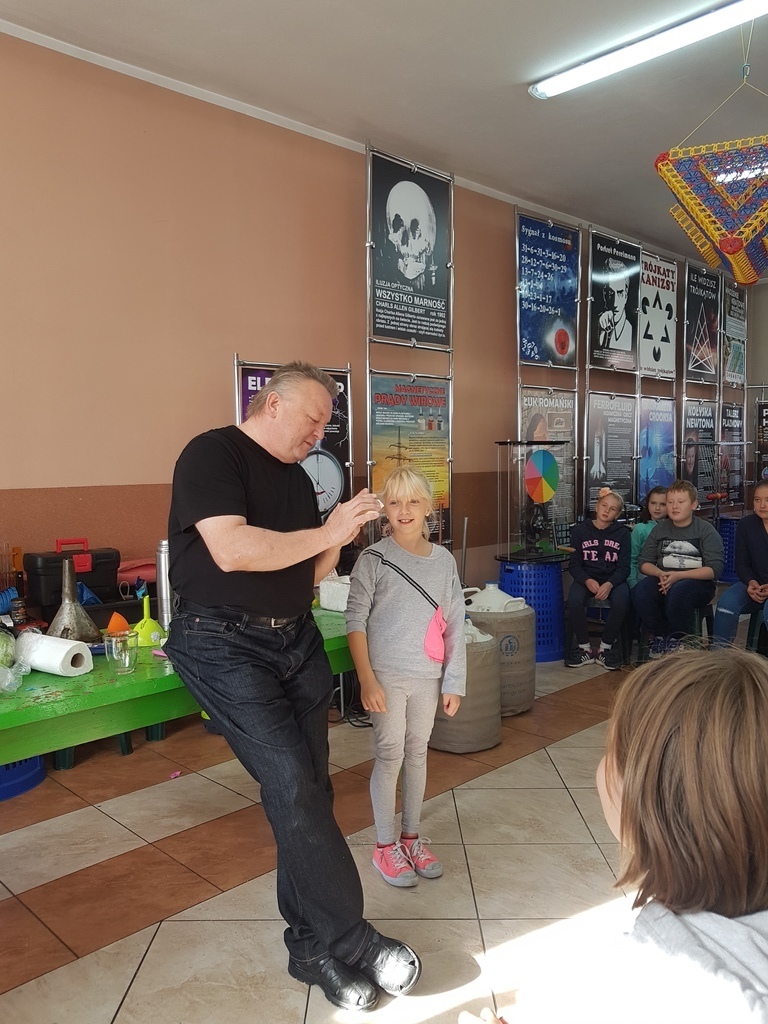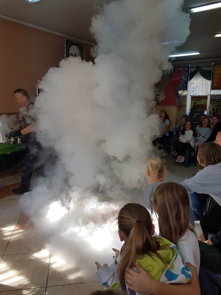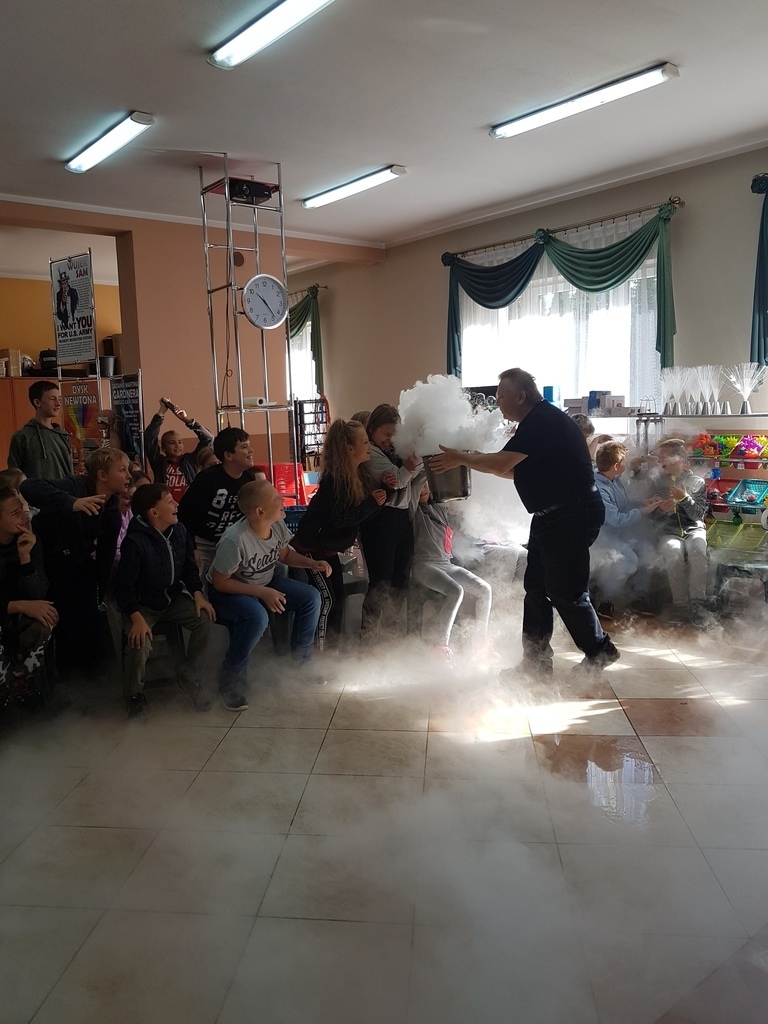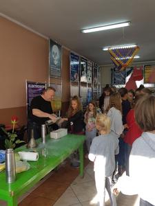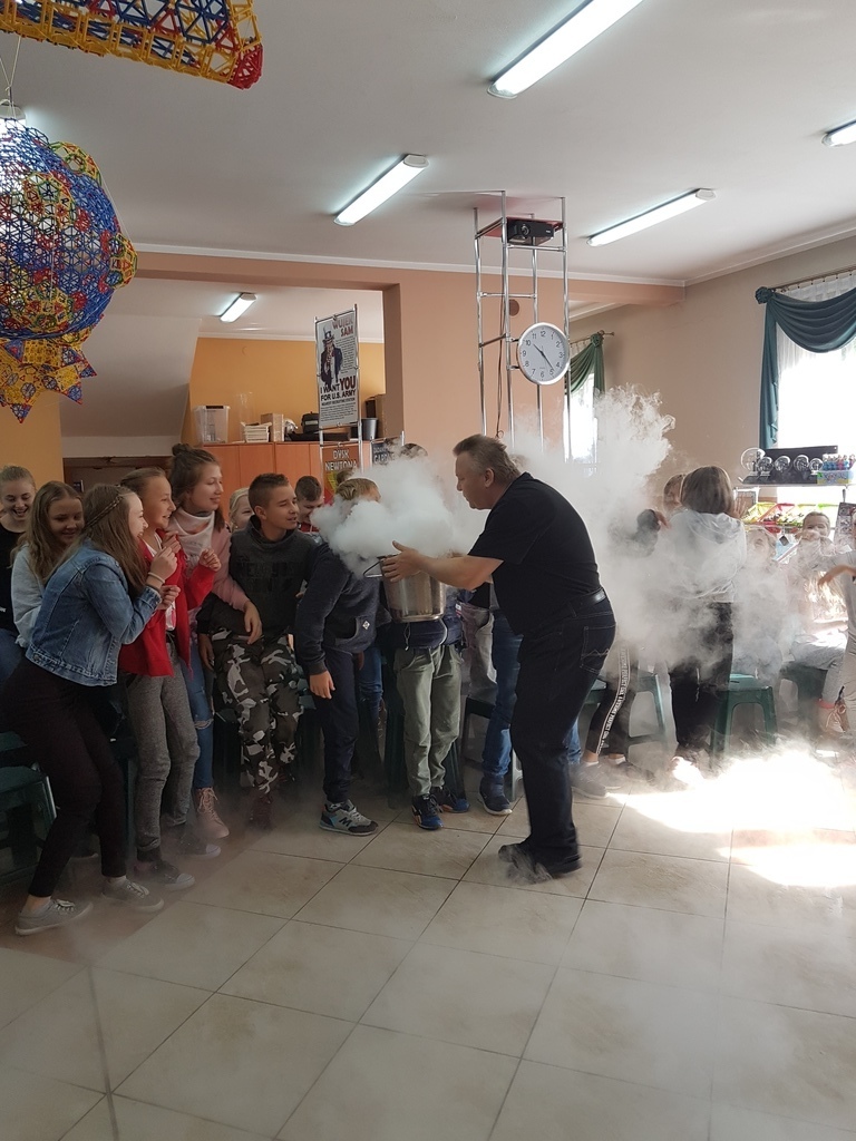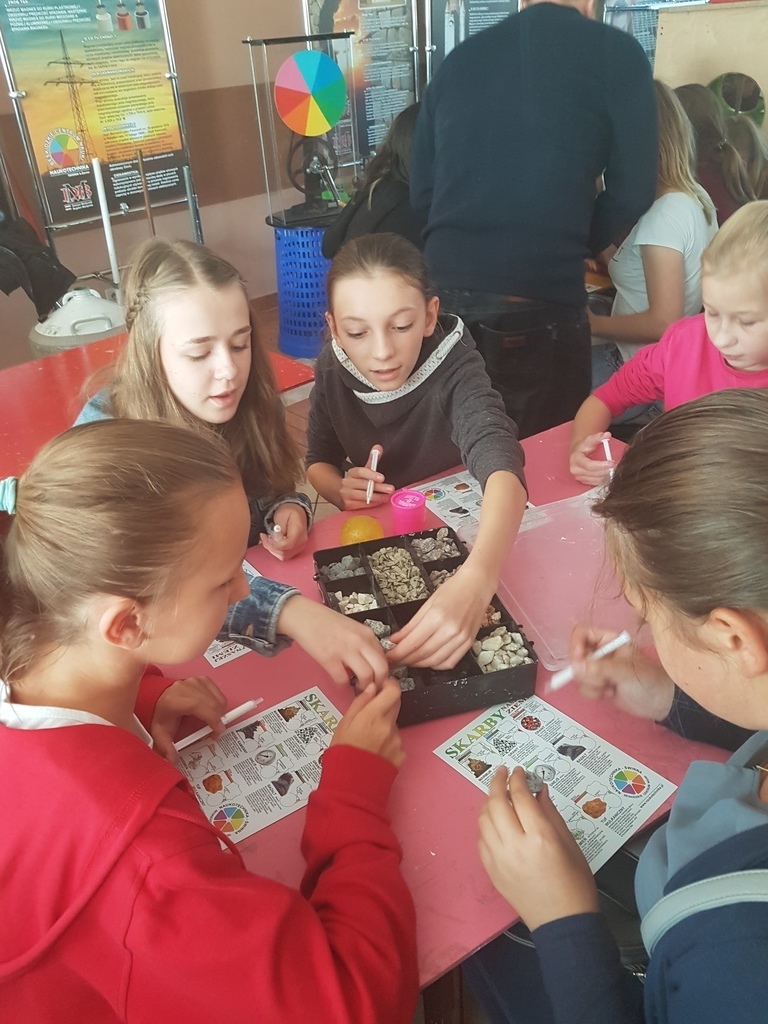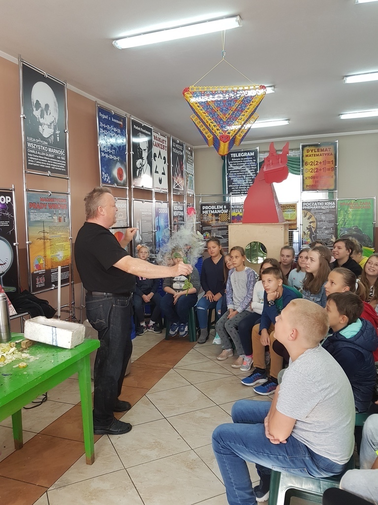 1 października uczniowie klas V, VI i VII udali sie na warsztaty do Świnnej. Zajęcia zostały podzielone na dwie części: pokazy z ciekłym azotem i warsztaty geologiczne.