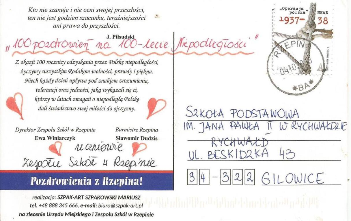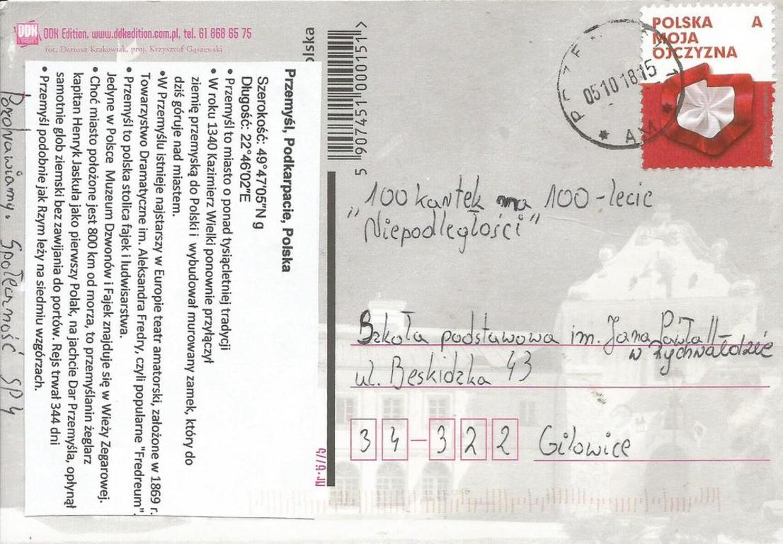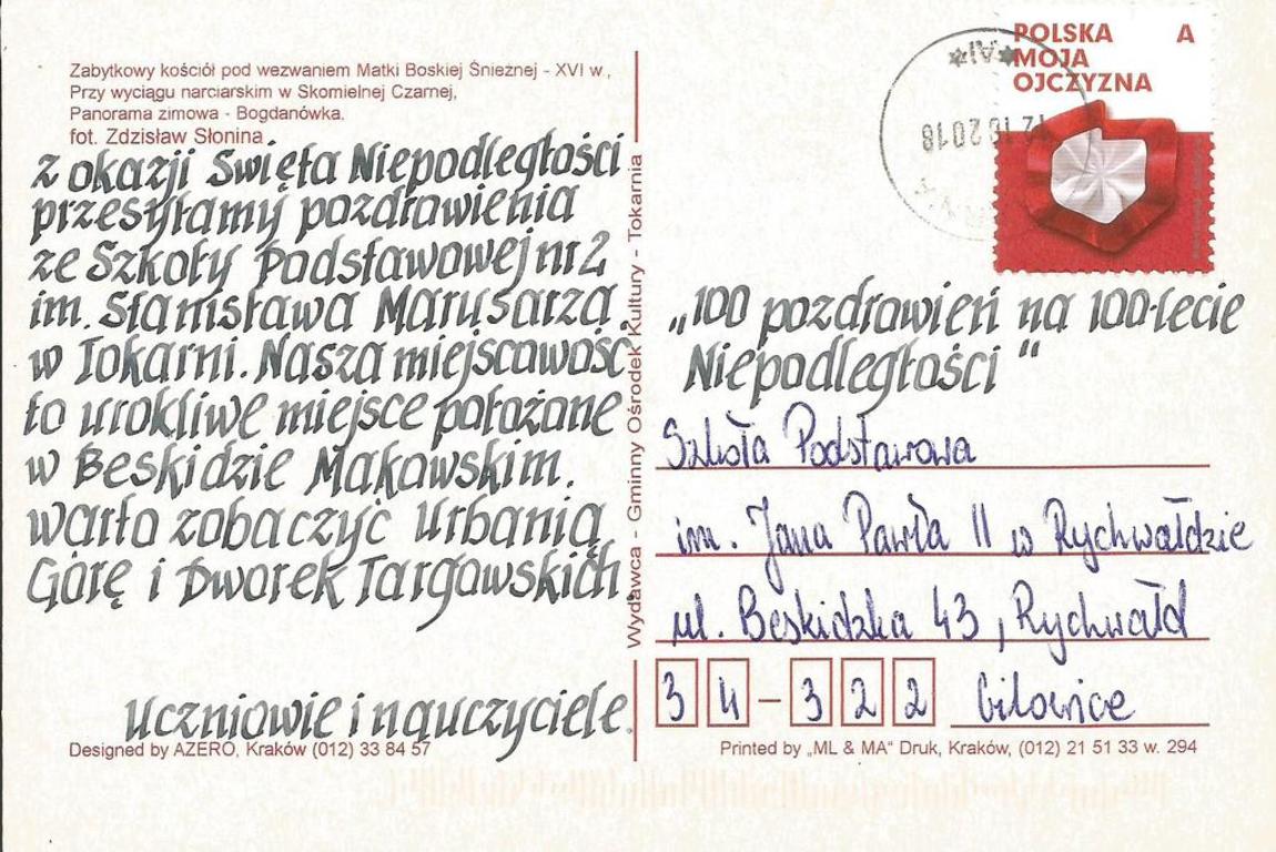 Wysłaliśmy 100 kartek do 100 szkół w całym kraju (lista nr 6). Otrzymaliśmy już ponad 60 pocztówek, które prezentujemy poniżej.