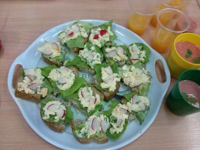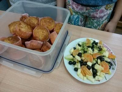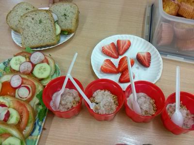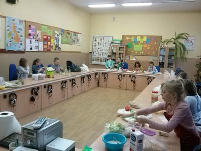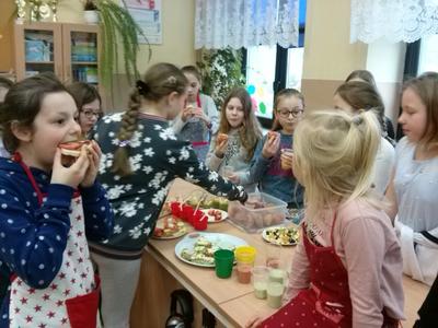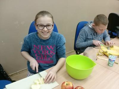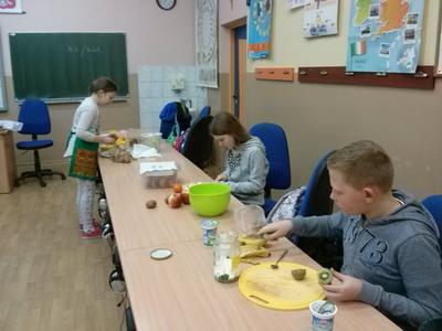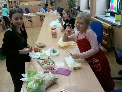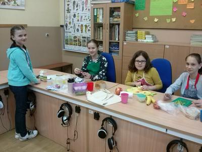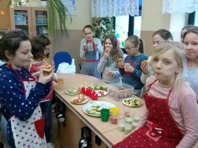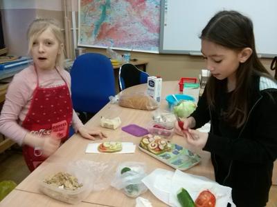 O tym, jak ważnym posiłkiem jest śniadanie, uczniów klasy Vb nie trzeba przekonywać. Wykazali się oni dużą wiedzą na temat zdrowego odżywiania, kiedy na jednej z lekcji wychowawczych omawialiśmy ten temat. Okazało się też, że nie tylko w teorii, ale i w praktyce świetnie sobie radzą. 22 marca mieli okazję, aby się sprawdzić. Wtedy to miała miejsce prawdziwa śniadaniowa uczta - uczniowie przynieśli przeróżne zdrowe produkty i przygotowali śniadania, które sami chętnie by zjedli (bo teoria teorią, ale wiadomo, że śniadanie często dzieciom zjeść ciężko). Dzieci zrobiły wspaniałe posiłki, które tuż po uwiecznieniu na zdjęciach zniknęły z talerzy! Królowały koktajle z warzyw i owoców, kolorowe kanapeczki i musli w różnych wydanaich. Były nawet przygotowane dzień wcześniej mufinki z łososiem! Ach, smacznie było :-)