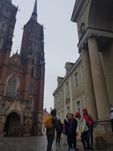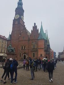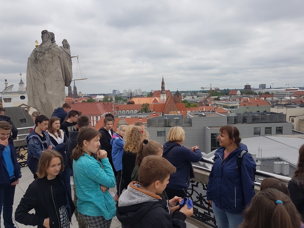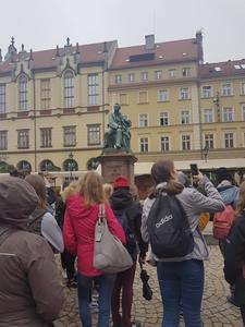 W dniach 15-16 maja zorganizowaliśmy wycieczkę do Wrocławia dla uczniów naszej szkoły. Program wypełniony był różnorodnymi atrakcjami, których w stolicy Dolnego Śląska nie brakuje. Każdy z uczestników na pewno znalazł coś ciekawego dla siebie. Nasza przygoda z tym pięknym miastem rozpoczęła się od zwiedzania Panoramy Racławickiej - to wspaniałe arcydzieło zachwyciło nas wszystkich swą oryginalnością i wielkością kunsztu malarskiego. Następnie zwiedziliśmy najstarszą część Wrocławia – Ostrów Tumski z piękną 700 letnią katedrą Jana Chrzciciela. Drugiego dnia naszej wycieczki byliśmy w Afrykanarium, gdzie było mnóstwo egzotycznych zwierząt. Następnie udaliśmy się do Parku Szczytnickiego, gdzie uczestniczyliśmy w pokazie multimedialnej fontanny w rytm muzyki rockowej. Tam też znajduje się słynna Hala Stulecia wpisana na listę UNESCO oraz piękny Park Japoński. Kolejnym etapem naszej wycieczki był Uniwersytet Wrocławski, a w nim przepiękna Aula Leopoldina. Na Uniwersytecie zwiedziliśmy także Wieżę Matematyczną, z której podziwialiśmy z góry piękno Wrocławia. Byliśmy zachwyceni widokami Wrocławia. Była to wspaniała, niezapomniana wycieczka, która dostarczyła nam pięknych przeżyć i wrażeń.