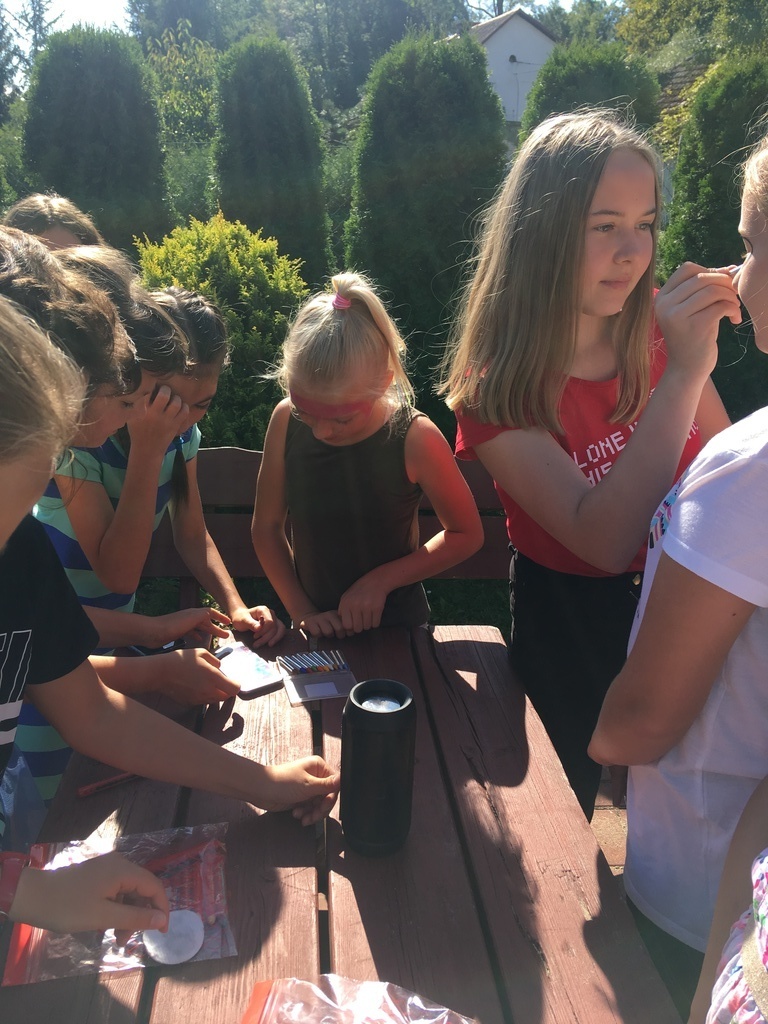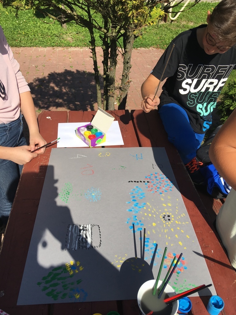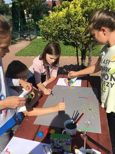 Uczniowie klasy VIb podczas warsztatów kreatywności wykazują się niezwykłą pomysłowością. Na ostatnich zajęciach malowali sobie wzajemnie twarze. Druga grupa uczniów, w związku ze zbliżającym się Dniem Kropki wyczarowywała pędzlem i farbą świat z kropek.