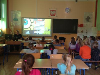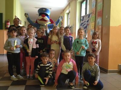20 września klasy 1 i 2 miały spotkanie z policjantem pt." Bezpieczni w drodze do szkoły". Dzieci wykazały się świetna znajomością przepisów i zasad ruchu drogowego. Najwięcej emocji wzbudziło spotkanie z psem policyjnym Sznupkiem. Dzieci chętnie też dawały zakuć się w kajdanki, co rzadko się zdarza wśród dorosłych 🙂