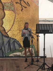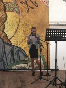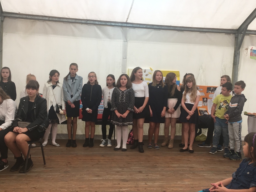 Następnie odbyła się prezentacja plakatów obrazujących pielgrzymki Jana Pawła II do państw europejskich. Przedstawiciele z poszczególnych klas zaprezentowali piękne plakaty wykonane przez swoje klasy, które teraz będą podziwiane na szkolnych korytarzach.