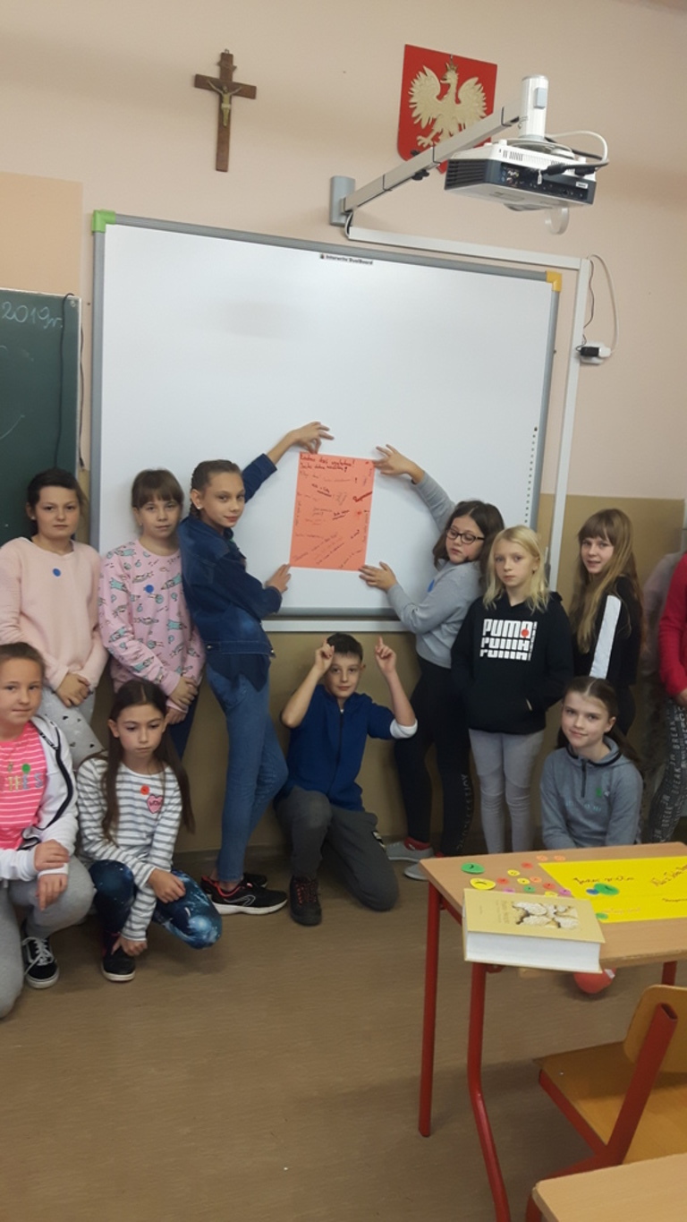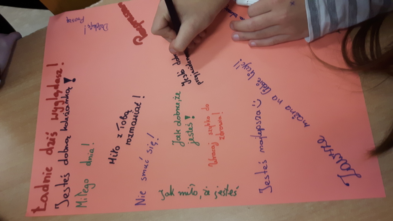 Jak się okazało znamy wiele ciepłych słów. Niestety, na co dzień używamy ich nie za często. A szkoda, bo wypowiadane do innych, zawsze do nas powracają. Czynią ten świat piękniejszym, milszym i przyjemniejszym. Budzą uśmiech na ustach i wlewają pokój do serc zarówno dla tych, którzy je wypowiadają, jak i do tych, którzy ich słuchają. Mogliśmy przekonać się o tym, podczas tych kilku godzin w szkole.
