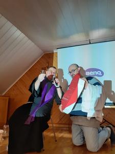 Równie obrazowo została zademonstrowana druga część warsztatów o grzechu, polegająca na poszukiwaniu lekarstw, dzięki którym człowiek zostaje uzdrowiony ze swoich grzechów. Katecheci O. Krzysztof jako kapłan-spowiednik i p. Irek jako człowiek przystępujący do sakramentu pokuty, pokazali rzeczywistość nawrócenia. Tylko człowiek z żalem wyznający grzechy, przebaczający winowajcom może wpuścić Boże światło do swojej duszy. Reszty dokonuje Jezus, który zabiera nasze grzechy na krzyż i za nie umiera, dając nam zbawienie.