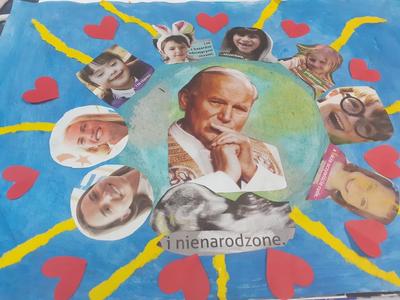 W tym celu co roku organizujemy DZIEŃ PAPIESKI obchodzony w październiku, świętujemy rocznice Jego śmierci. Uczniowie naszej szkoły biorą udział w różnych konkursach poświęconych osobie Jana Pawła II.