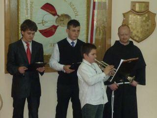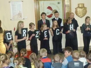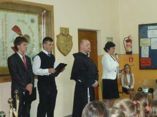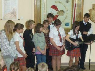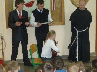 W siódmą rocznicę śmierci Papieża Jana Pawła II w naszej szkole w samo południe uczniowie wspominali wielkiego Polaka. Przygotowana przez katechetów panią Dorotę Walatek i ojca Witolda Słowika okolicznościowa akademia przypomniała wszystkim ponadczasowe słowa Naszego Patrona. W uroczystości wzięli udział wszyscy uczniowie, nauczyciele i pracownicy szkoły. Gościem specjalnym był Gwardian Sanktuarium Maryjnego Ojciec Probosz Radosław Kramarski. Przedstawienie uczniów klasy V wzbogaciły występy młodych artystów, którzy od niedawna uczą się grać na różnych instrumentach. Swój koncert ofiarowali Janowi Pawłowi II. Uroczystość zakończył występ Chóru Szkolnego prowadzonego przez panią Małgorzatę Bąk, w wykonaniu którego usłyszeliśmy dwa piękne utwory patriotyczne.