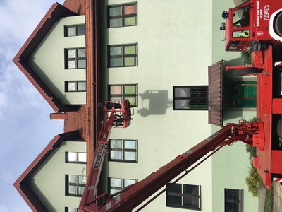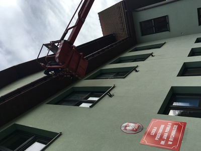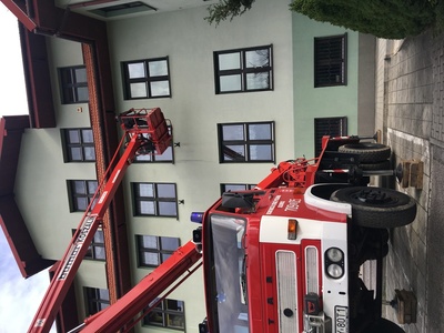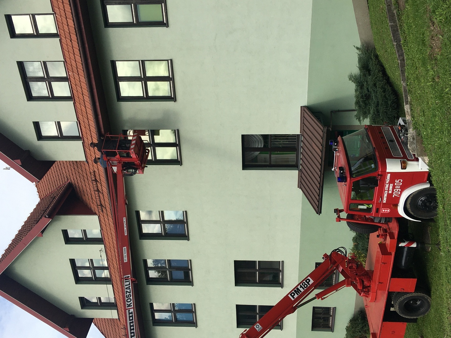 Dyrektor Szkoły Podstawowej w Rychwałdzie bardzo serdecznie dziękuje Panom Pawłowi i Marcinowi Górnym za naprawę nieszczelnych rynien na budynku szkoły oraz uzupełnienie wyrwanych przez silny wiatr podbitek. Przy wykorzystaniu samochodu strażackiego ze zwyżką Panowie strażacy poświęcając swój wolny czas 10.10.2020r. w sobotę usunęli usterki oraz oczyścili rynny. Dzięki temu podczas deszczu woda nie będzie spływała na schody, lecz do studzienki odprowadzającej deszczówkę.