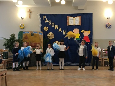 Na wstępie uczniowie przedstawili się, a następnie odpowiadając na pytania starszych koleżanek wykazali się wiedzą z różnych dziedzin m.in. rozwiązując zagadki o Polsce, prezentując zasady ruchu drogowego oraz wiadomości dotyczące społeczności szkolnej i lokalnej. Zaprezentowali też umiejętności aktorskie i wokalne. Spotkanie rozpoczęło się od przedstawienia pt. „Tomcio Paluch idzie do szkoły”, a zakończyło prezentacją występu na Festiwalu Piosenki Religijnej w MCK -u w Żywcu, na którym pierwszacy zdobyli II miejsce.