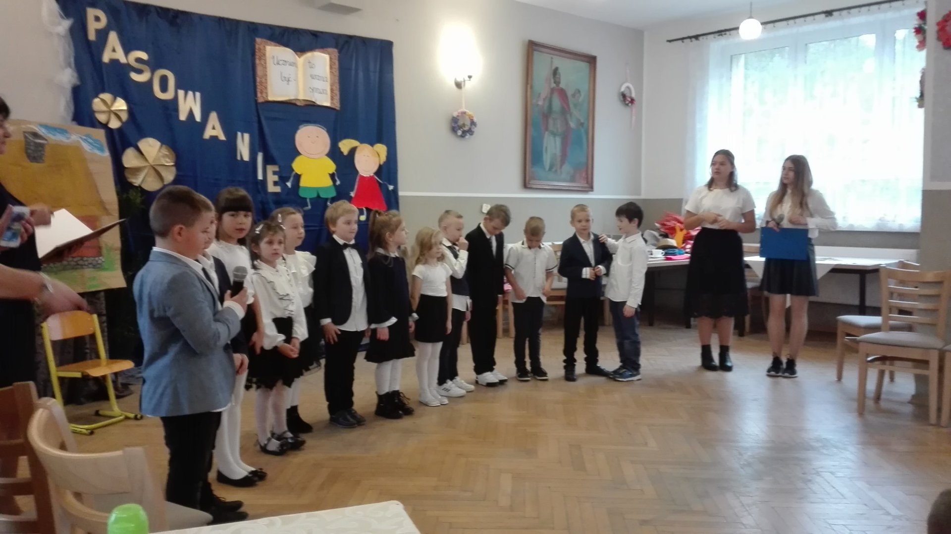W obecności rodziców oraz zaproszonych gości: sekretarza Gminy Gilowice p. Sylwii Góra , O. Proboszcza Grzegorza Siwek, p. Dyrektor oraz nauczycieli i uczniów klasy drugiej i trzeciej uczniowie klasy I ślubowali uroczyście: