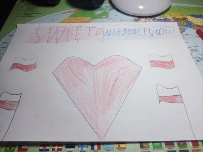 11 listopada obchodziliśmy 102 rocznicę Odzyskania przez Polskę Niepodległości. Niestety, nie mogliśmy wspólnie świętować. Dziękujemy uczniom naszej szkoły, którzy z okazji Narodowego Święta wykonali prace plastyczne, flagi biało-czerwone i w ten sposób oddali cześć Niepodległej Polsce.