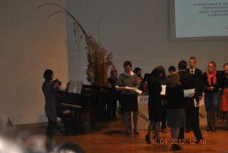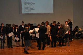 23 kwietnia 2012r. w Bielsku-Białej odbyła się uroczystość wręczenia zaświadczeń - dyplomów laureatom konkursów przedmiotowych dla uczniów gimnazjum. W uroczystości wzięli udział także uczniowie naszej szkoły, którzy w tym roku zdobyli tytuł Laureata. Arkadiusz Greń uczeń III klasy gimnazjum został Laureatem w konkursie z matematyki. Do konkursu przygotowywała go pani Dorota Kowalczyk. Drugim tegoroczym Laureatem z historii został uczeń klasy II gimnazjum Andrzej Dybał. Opiekunem Andrzeja był pan Witold Bulik. Tytuł Laureata zapewnia uczniom zwolnienie z egzaminu gimnazjalnego i uzyskanie tym samym maksymalnej liczby punktów z tego egzaminu. W tym roku z tego przywileju skorzystał Arek. Zwolniony był zarówno z części matematycznej, jak też przyrodniczej. W komfortowej sytuacji jest Andrzej, ponieważ już na rok przed terminem egzaminu zapewnił sobie zwolnienie z części humanistycznej oraz historii i WOS-u. Ma szansę ubiegać się o tytuł Laureata z innych przedmiotów np. przyrodniczych i języków obcych i uzyskać zwolnienie z pozostałych egzaminów, czego serdecznie mu życzymy. Laureatom, jak ich opiekunom serdecznie gratulujemy sukcesu i życzymy kolejnych.