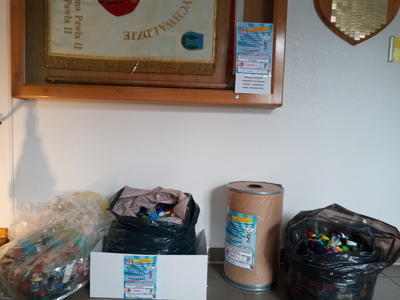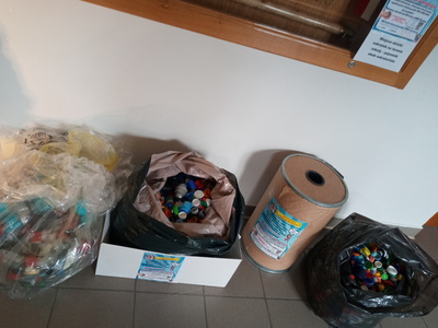Oprócz akcji "fartuszkowej" trwa także zbiórka nakrętek plastikowych. Tak też można wspomóc Wiktorka. Zbieranie nakrętek nie wiąże się z żadnym nakładem finansowym - wystarczy konsekwentnie zbierać pojedyncze nakrętki do pojemników w swoich domach, a następnie przynieść je do szkoły. Ostatnio zawieźliśmy to, co zdołaliśmy uzbierać (a niestety zbiórkę utrudniały nam najpierw kwarantanny, a potem nauczanie zdalne) do punktu zbiorczego w Żywcu. W ten sposób dołożyliśmy kolejną cegiełkę na rzecz chłopczyka, który walczy o najdroższy lek świata.