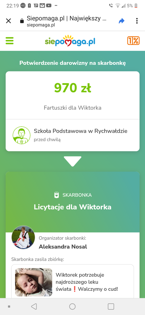 970 złotych - taką kwotą udało się zasilić zbiórkę Wiktorka Szczechowiaka, dzięki sprzedaży fartuszków w naszej szkole. Dziękujemy Wam drodzy uczniowie, rodzice i nauczyciele! Na Was zawsze można liczyć :-)