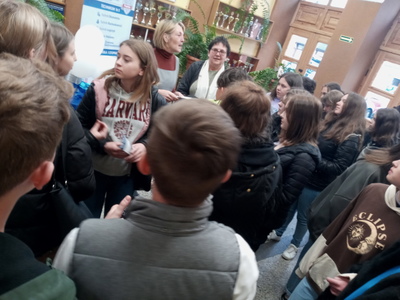 27 kwietnia uczniowie obu ósmych klas wraz z wychowawczyniami zwiedzili w ramach Dni Otwartych cztery żywieckie szkoły średnie: Zespół Szkół Budowalano-Drzewnych, Zespół Szkół Ekonomiczno-Gastronomicznych, Zespół Szkół Mechaniczno-Elektrycznych oraz Zespół Szkół Technicznych i Leśnych. Uczniowie zapoznali się z ofertą dydaktyczną tychże szkół, zwiedzili nowoczesne pracownie i laboratoria, wzięli udział w konkursach językowych i chemicznych, dowiedzieli się, jakie ciekawe kierunki i profile na nich czekają, wysłuchali prelekcji, a nawet zobaczyli pokaz mody i podziwiali występy taneczne. Mamy nadzieję, że dzięki temu łatwiej będzie naszym uczniom podjąć decyzję co do wyboru szkoły i profilu klasy.