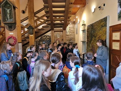 Wycieczka do zamku w Żywcu, czyli "Cudze chwalicie, swego nie znacie..." 28 września uczniowie klas 4-8 byli z wychowawcami w Muzeum Żywieckim. Niby blisko, niby znane, a jednak nowe ekspozycje, odrestaurowane komnaty, świat dawnej Żywiecczyzny, a szczególnie szczątki mamuta odnalezione na terenach Rychwałdu zrobiły na uczestnikach duże wrażenie.