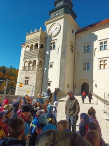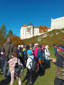 Trasa wycieczki rozpoczęła się pod Zamkiem w Pieskowej Skale, gdzie czekał na nas przewodnik. Razem z nim podeszliśmy na wbudowany w skały zamek, poznaliśmy jego historię, obejrzeliśmy zewnętrzne dziedzińce oraz tarasy widokowe. Następnie przeszliśmy pod najbardziej znaną Iglicę Skalną - Maczugę Herkulesa, która zachwyca swoim wyglądem i rozmiarami.