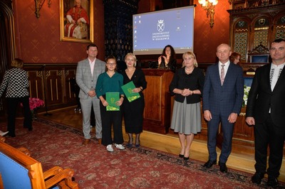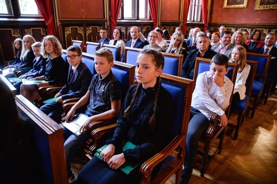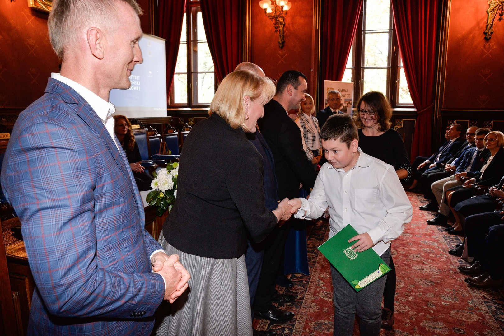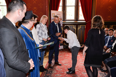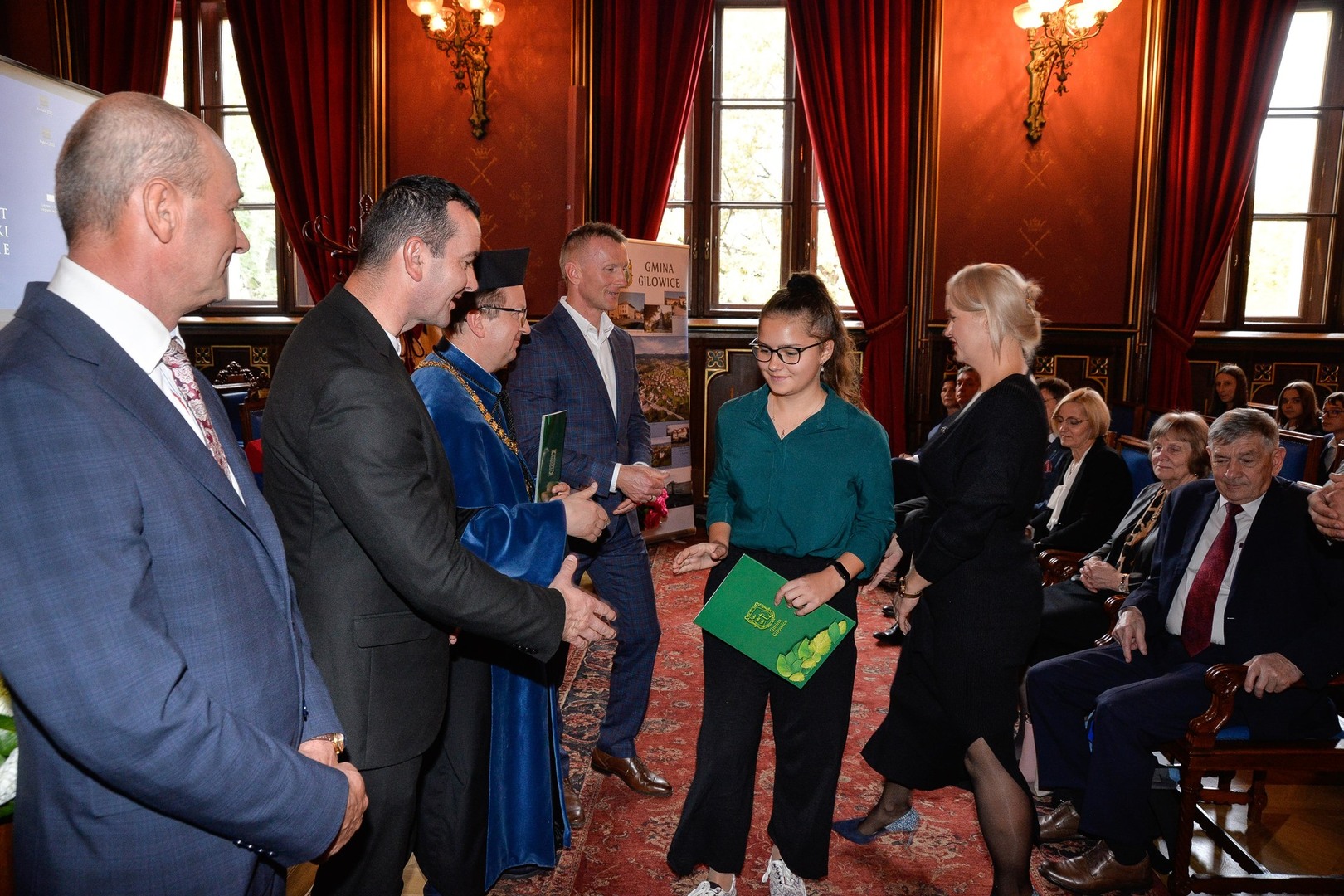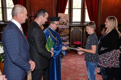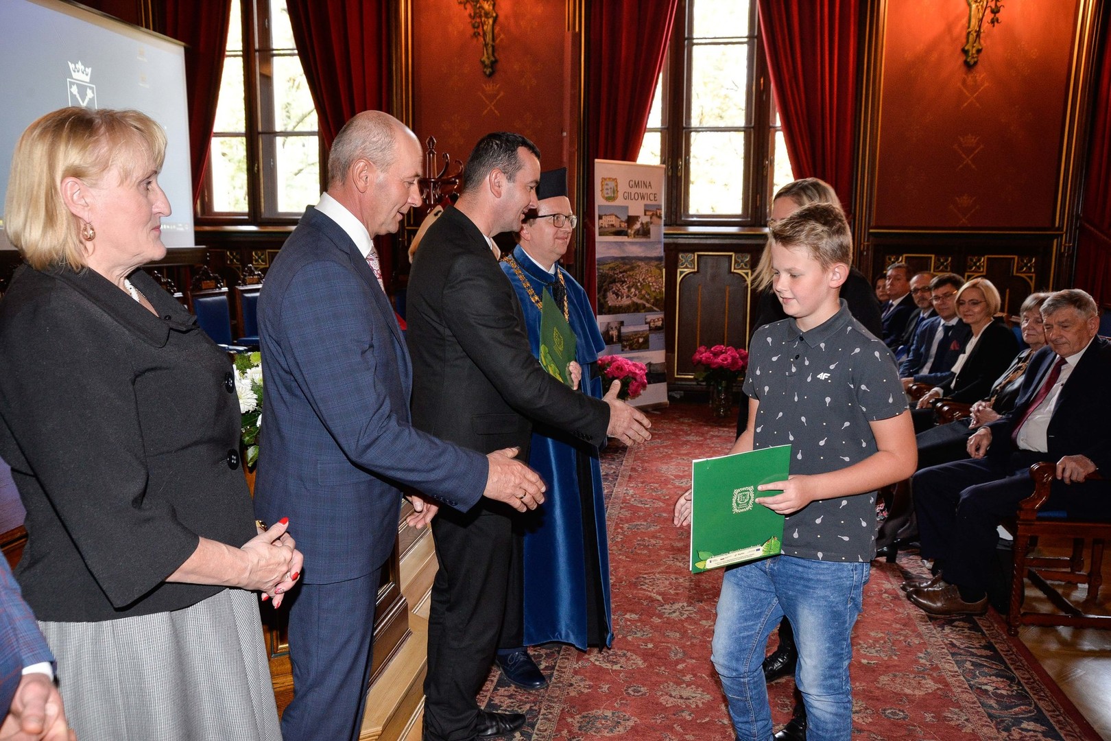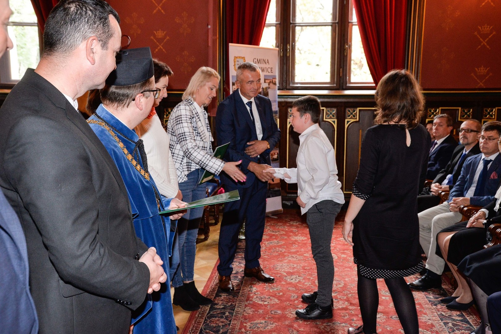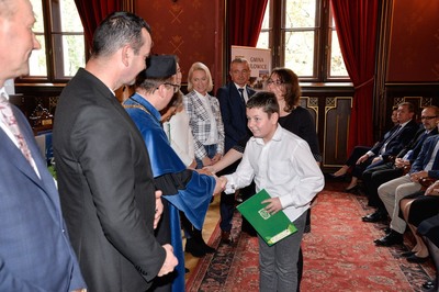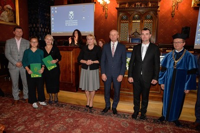 15 października czterech uczniów z naszej szkoły wraz z rodzicami uczestniczyło w niezwykłym wydarzeniu. Dzięki zaproszeniu Szkoły Podstawowej w Gilowicach wzięli oni udział w gali podsumowującej V edycję programu "Naprawdę warto się uczyć". Uroczystość odbyła się w Auli Collegium Novum na Uniwersytecie Jagielońskim w Krakowie. Hubert Barcik, Aleksandra Duc, Zuzanna Kastelik i Filip Sala za swoje osiągnięcia odebrali dyplomy, listy gratulacyjne i nagrody. Dodatkowo nagrody specjalne otrzymali: Aleksandra Duc - Nagrodę Dyrektora Szkoły Podstawowej im. Jana Pawła II w Rychwałdzie oraz Hubert Barcik - Nagrodę Rady Gminy Gilowice. Gratulujemy naszym uczniom wspaniałych wyników i życzymy dalszych sukcesów.