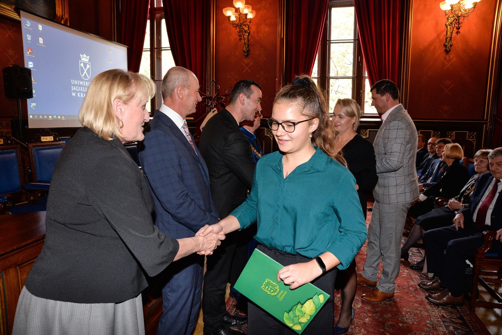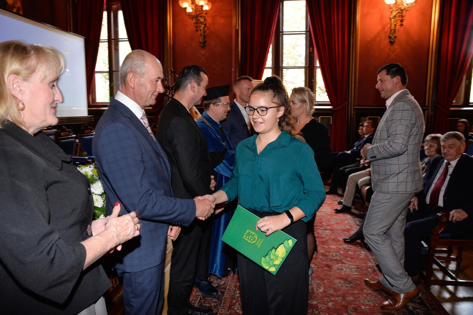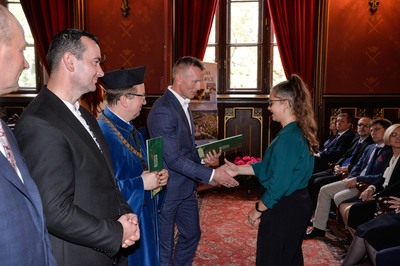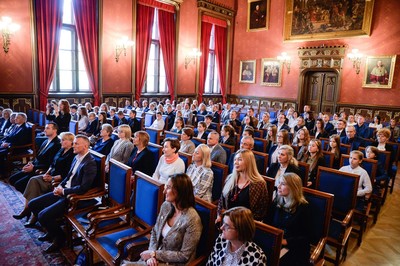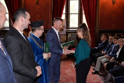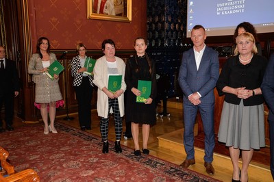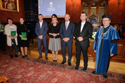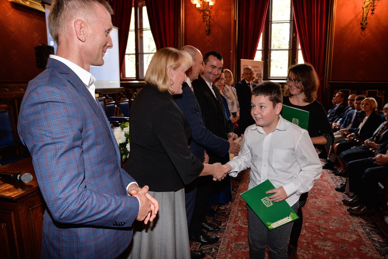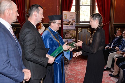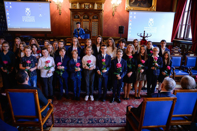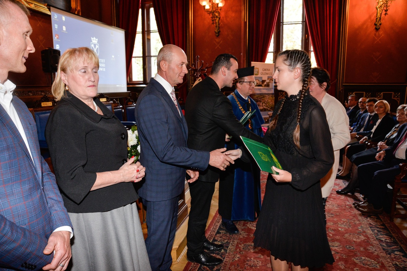 15 października czterech uczniów z naszej szkoły wraz z rodzicami uczestniczyło w niezwykłym wydarzeniu. Dzięki zaproszeniu Szkoły Podstawowej w Gilowicach wzięli oni udział w gali podsumowującej V edycję programu "Naprawdę warto się uczyć". Uroczystość odbyła się w Auli Collegium Novum na Uniwersytecie Jagielońskim w Krakowie. Hubert Barcik, Aleksandra Duc, Zuzanna Kastelik i Filip Sala za swoje osiągnięcia odebrali dyplomy, listy gratulacyjne i nagrody. Dodatkowo nagrody specjalne otrzymali: Aleksandra Duc - Nagrodę Dyrektora Szkoły Podstawowej im. Jana Pawła II w Rychwałdzie oraz Hubert Barcik - Nagrodę Rady Gminy Gilowice. Gratulujemy naszym uczniom wspaniałych wyników i życzymy dalszych sukcesów.