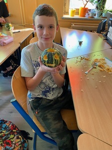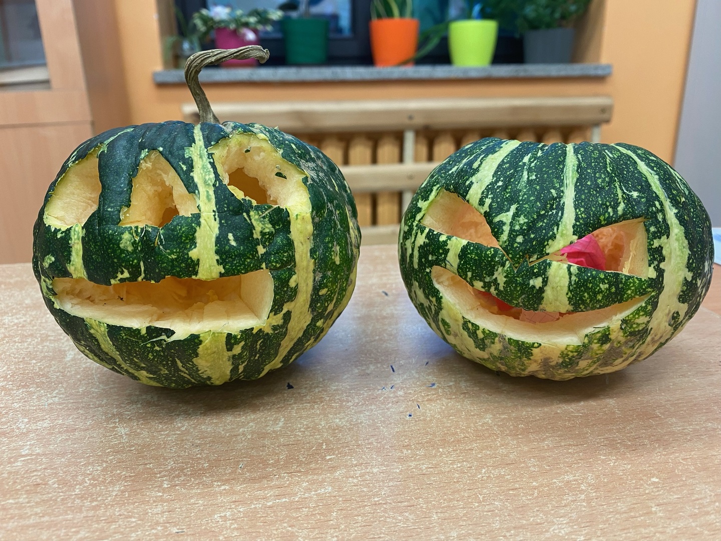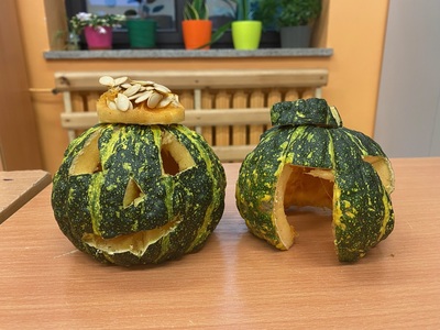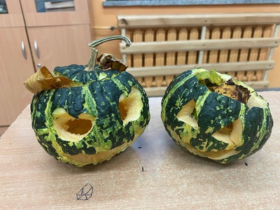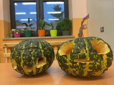 W ubiegłym tygodniu świętowaliśmy Dzień Dyni. Przedstawiciele Samorządu Uczniowskiego zorganizowali dla swoich kolegów i koleżanek kilka atrakcji związanych z tym dniem: dekoracja i rzeźbienie w dyniach, escape room oraz quiz wiedzy ogólnej z przedmiotów szkolnych. Już niebawem podliczymy punkty zdobyte przez klasy w quizie, a jury oceni wykonane dynie. Zwycięzców czeka słodka nagroda :)